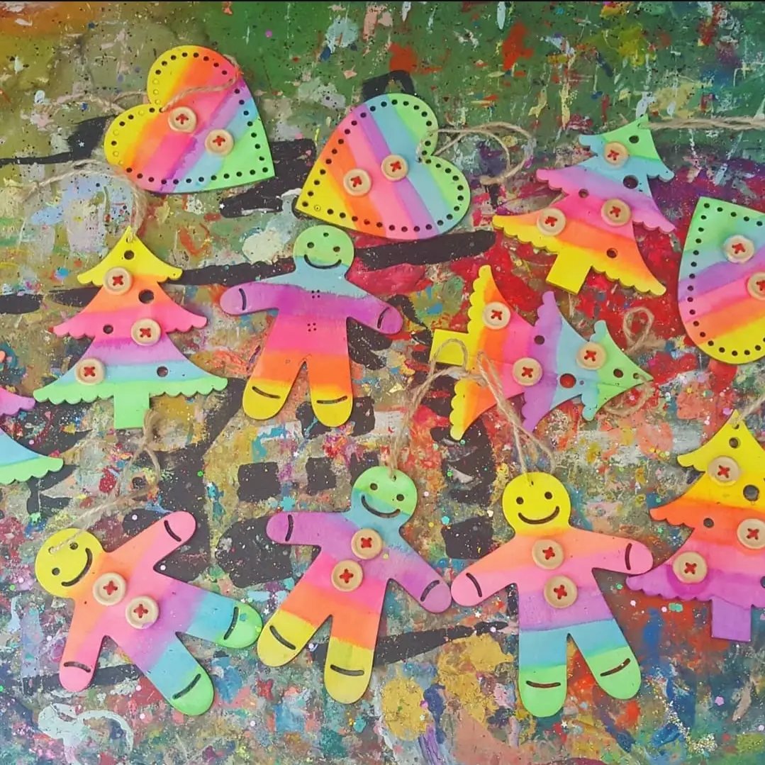 The best fluro watercolours @micador used for our Christmas decorations. ….. they are such a bargain $5 @bigwaustralia and they have been used so much!!! These decorations are from @riotartandcraft every year there so many cute new ones which we love collecting.