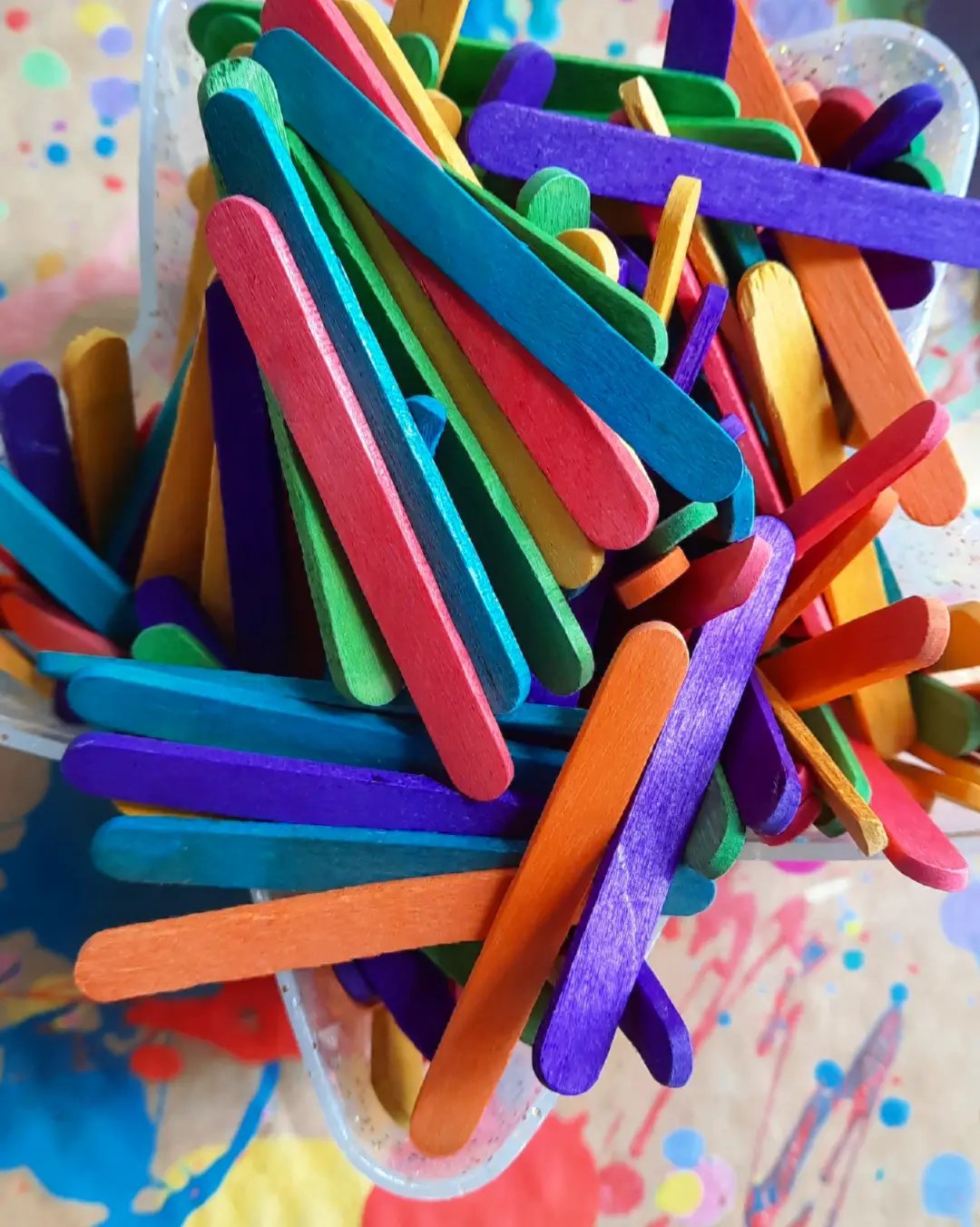 Mini paddle pop sticks, aren’t they cute ☺….. perfect size to make a Christmas tree! Our fun coloured paddle pop sticks are from @krafterskorneraus