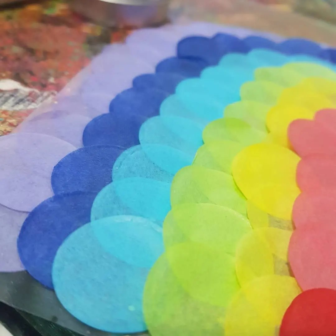 Paper confetti polka dots to make these sweet window sun catchers, our confetti dots from @krafterskorneraus …. some beautiful close up pics of these rainbows!! We have had cloudy days this week and will be sure to capture the sun beaming through!