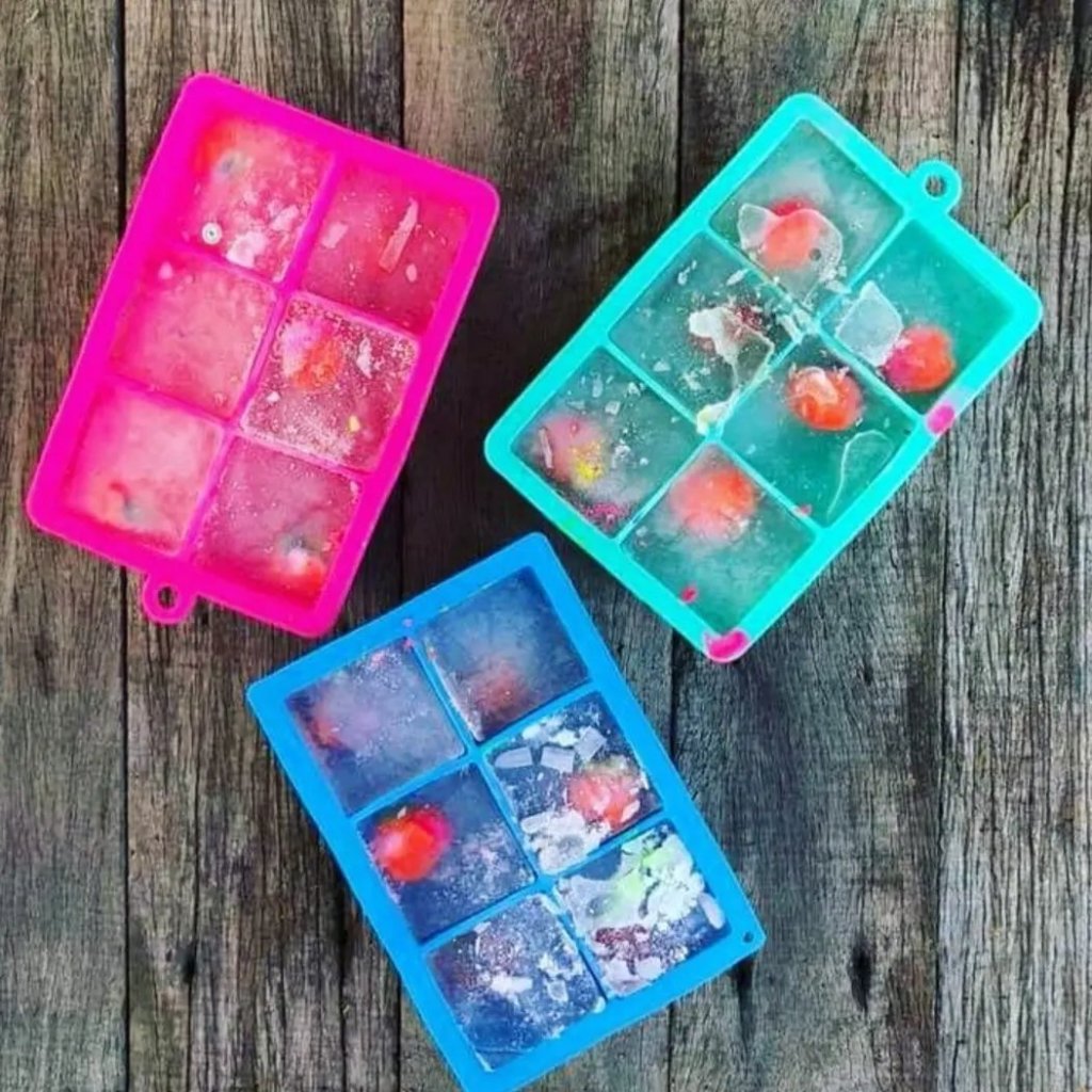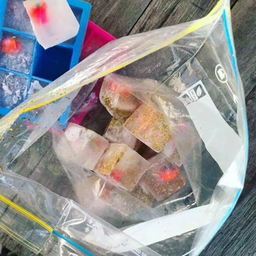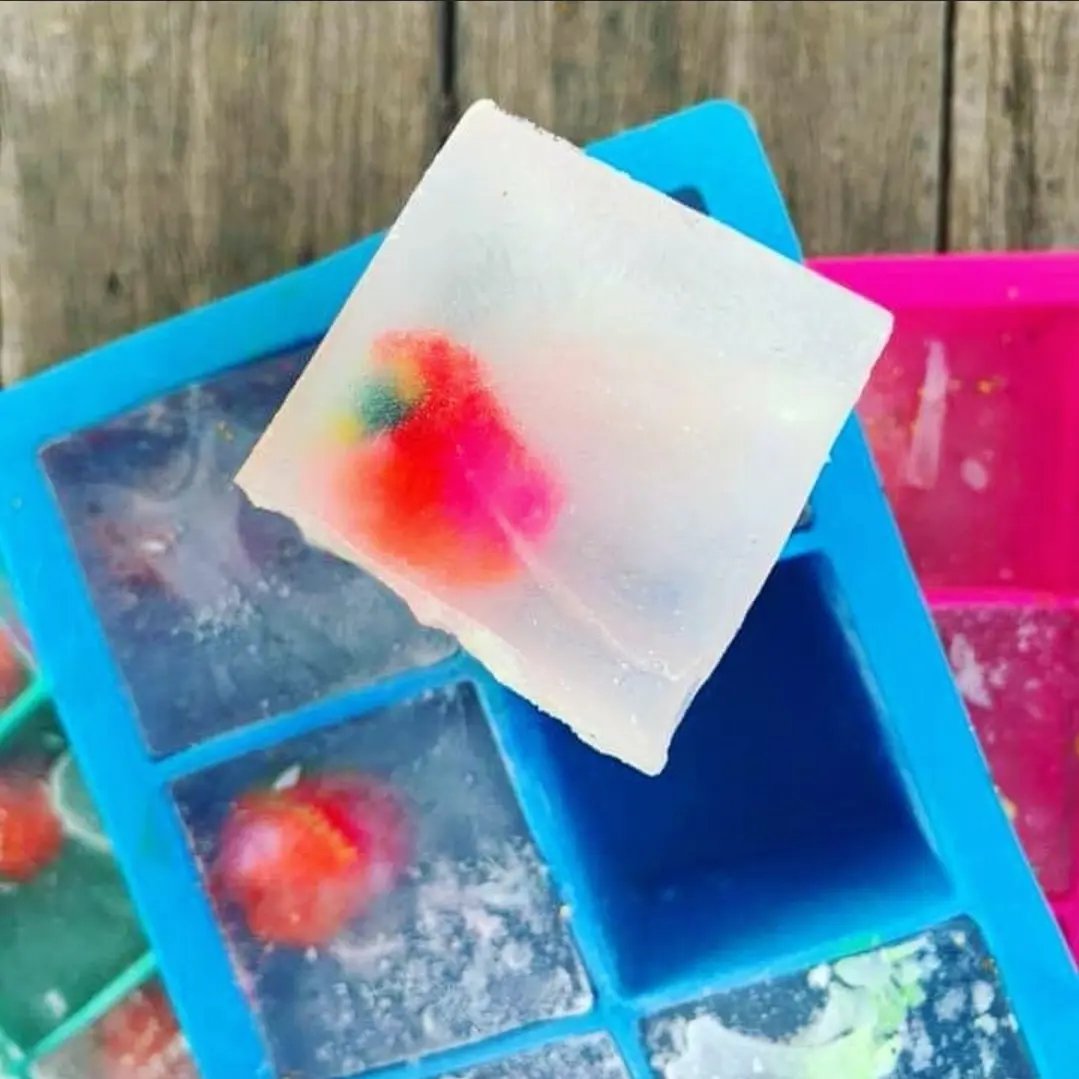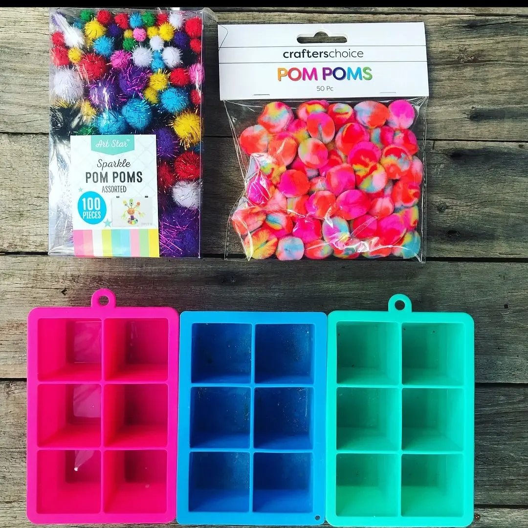 It’s going to be a warm humid day in Sydney this weekend so we have our frozen pom poms ready made in our square ice cube trays from @kmartaus & @targetaus for $1.50 -$2. Once frozen you can store them in containers or zip lock bags and get them out whenever your ready. Its handy having them in storage bags or containers in the freezer, even handy for rainny day activities.