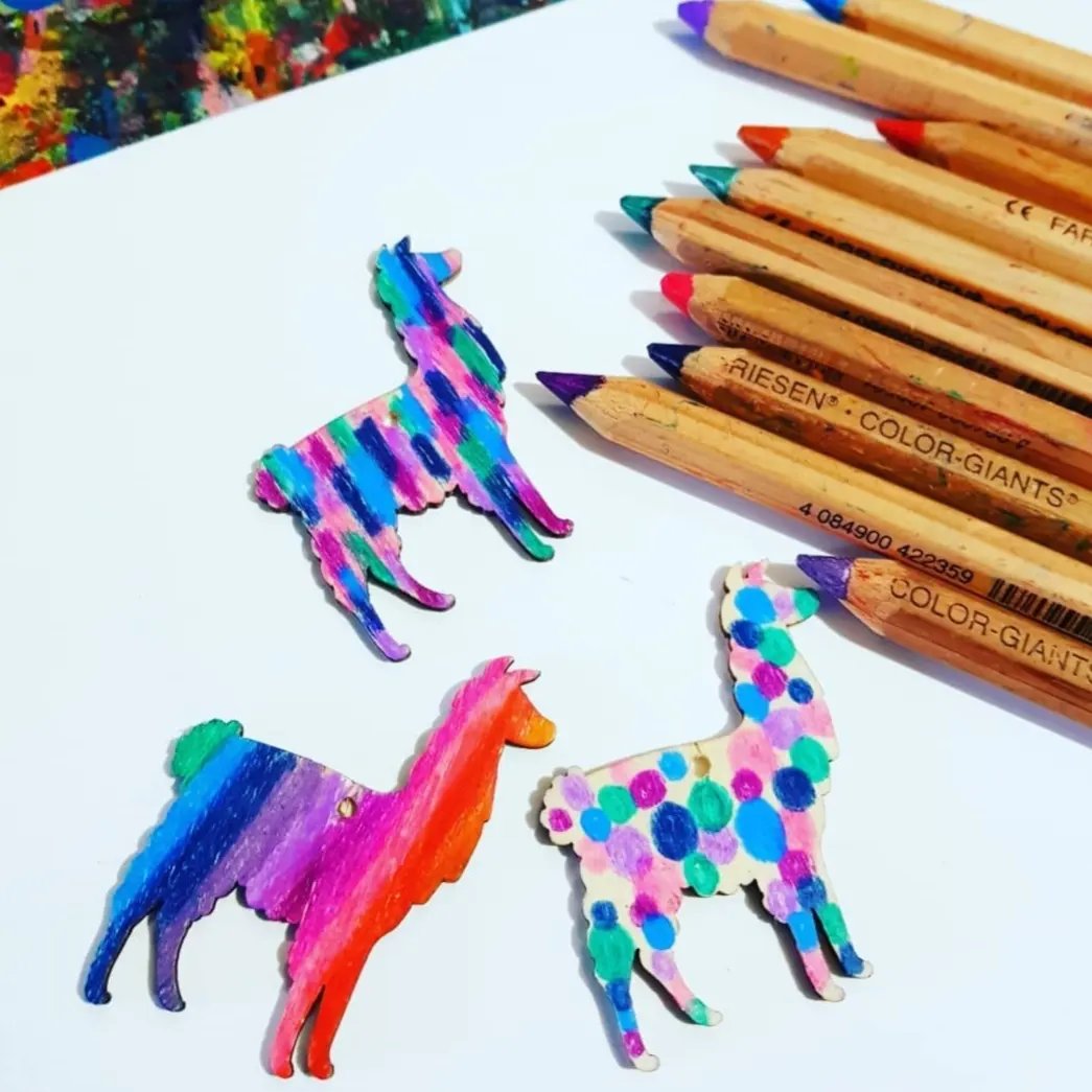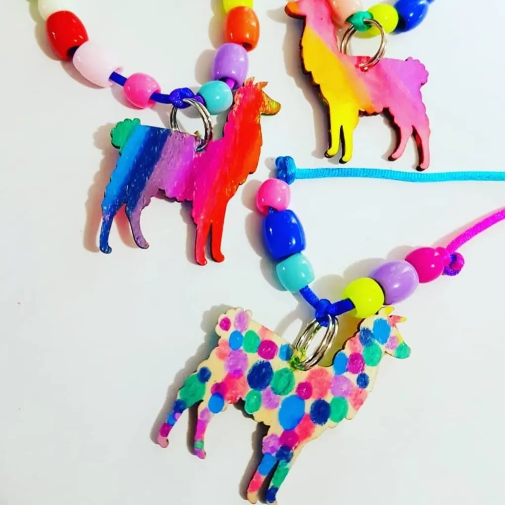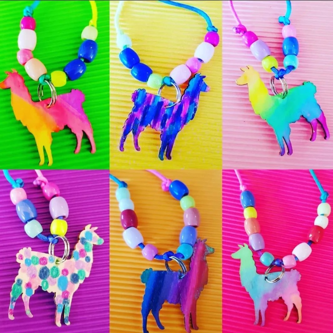 These little wooden alpacas getting a colourful makeover for some beautiful necklace charms, we love our fluro micador watercolours, they aren’t just for paper!!! These paints are from @bigwaustralia for $5 or online and our sweet alpacas from @riotartandcraft and i just drilled holes for a charm & gorgeous beads from @spotlight