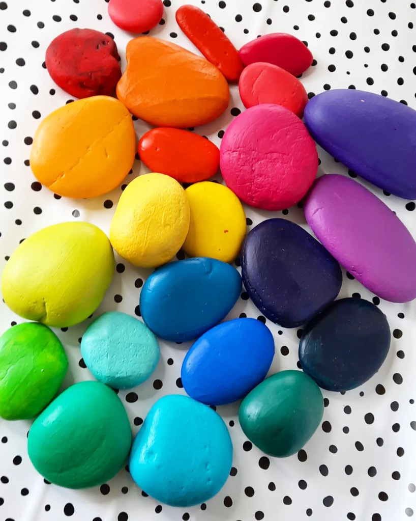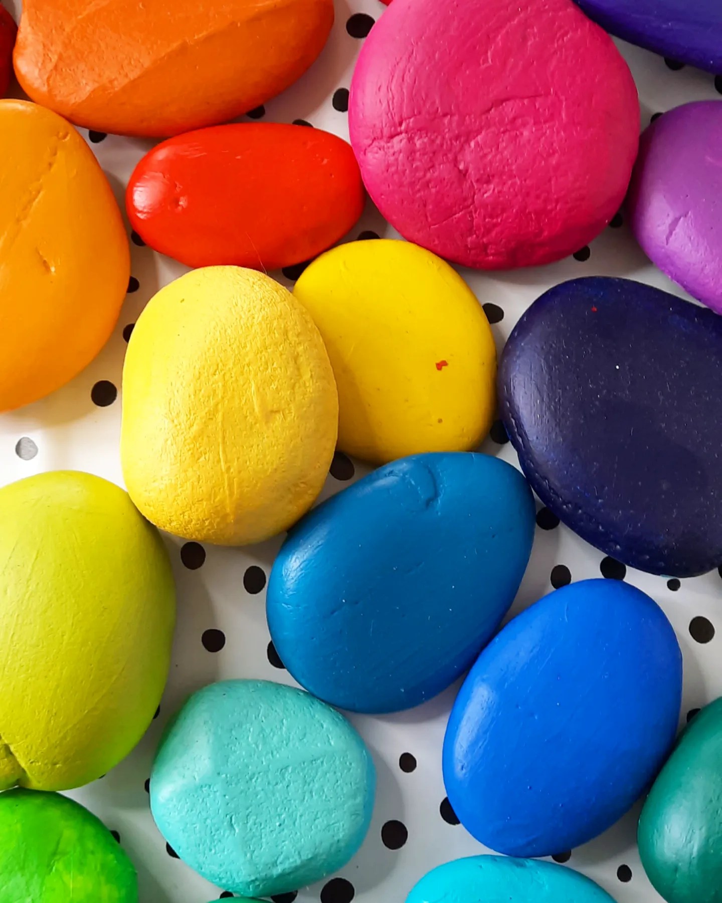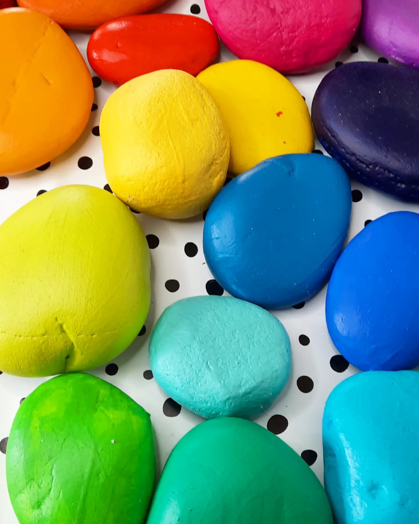 Our beautiful bright rainbow rocks, first stage of these before we paint rainbows on them or decorate them in all sorts of ways!!
