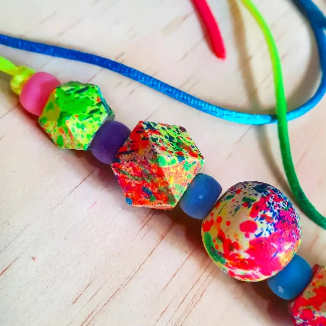 #spraypaint #art #kidsart #creativekids #craft #kidspainting #teachart #rainbowpaint #rainbowart #kidsactivities #kidsartspace #woodenbead #kidscraft #teachingkids #toddleractivity #homeschooling #toddlercraft #creativeplay #imagination #kids #creativekids #kidslearning #papercraft #threading #beads #schoolcrafts #beads #paper #learningthroughplay #rainbownecklaces #kmartaus #fluroesent