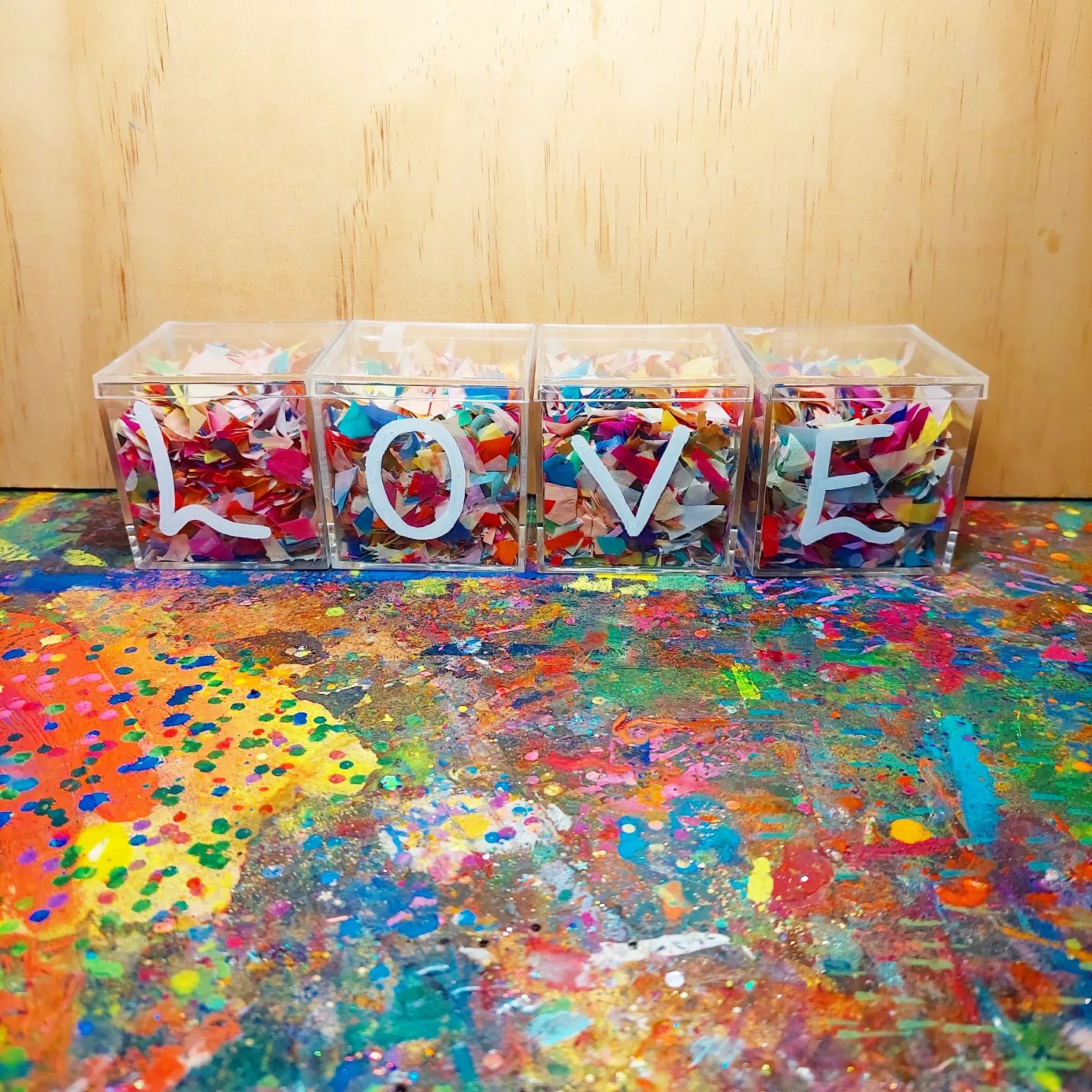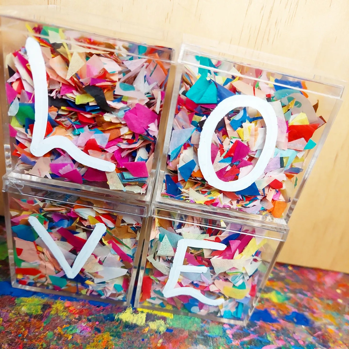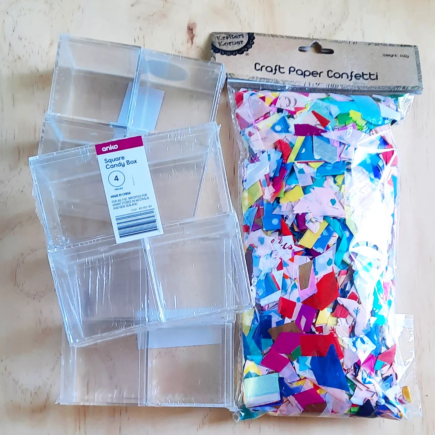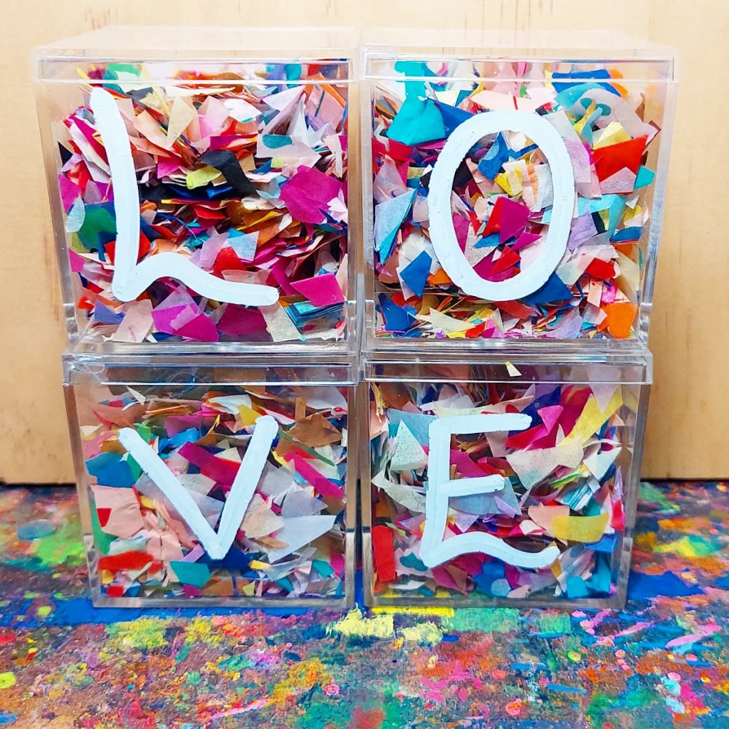 These cute candy boxes from @kmartaus with paper confetti from @krafterskorneraus are perfect for Valentine’s Day craft & decorations, we used a paint marker to write the word LOVE.