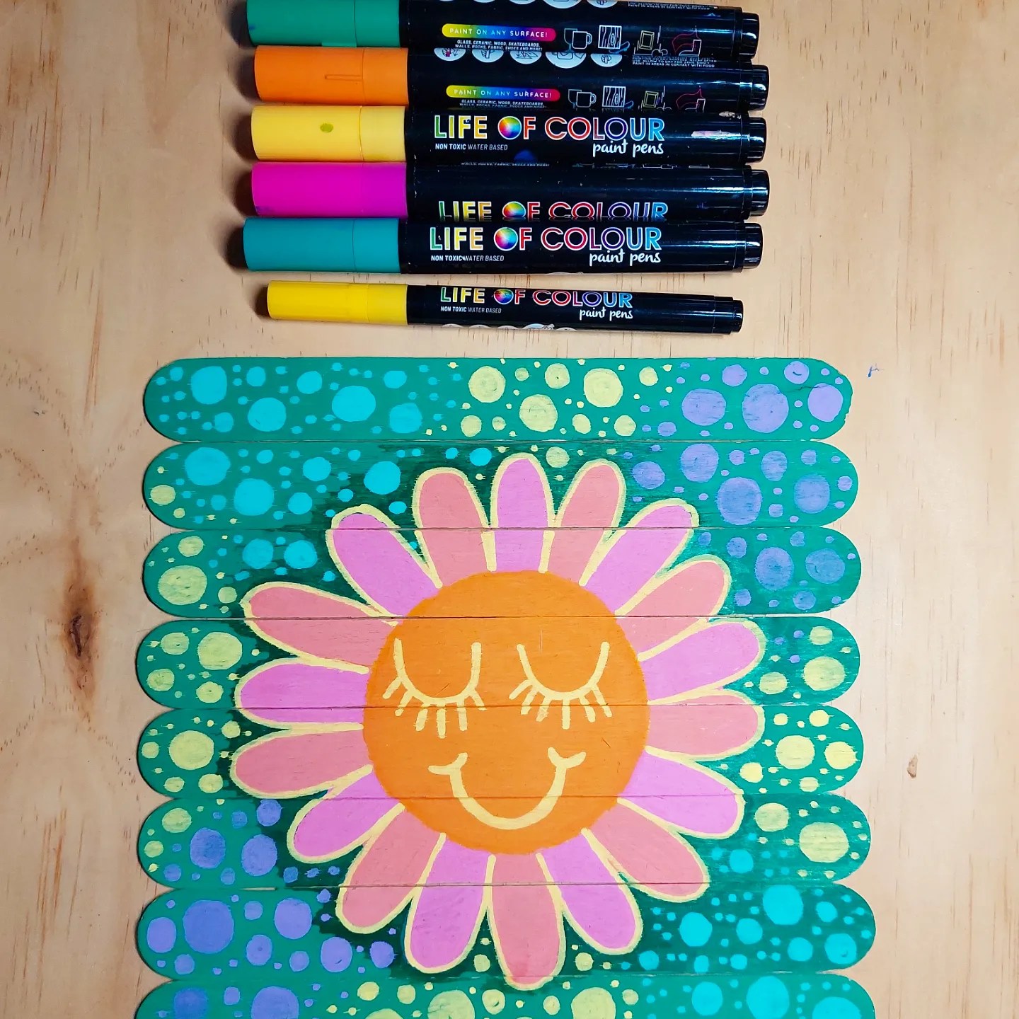 Large popcicle hand painted kids puzzle, we also call them paddle pop sticks….. we found the see fab blank sticks from @krafterskorneraus and used the gorgeous paint markers from @lifeofcolour.pens