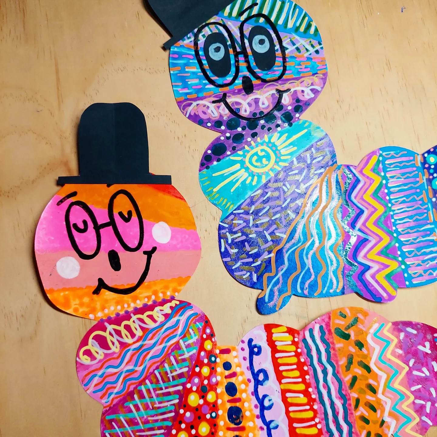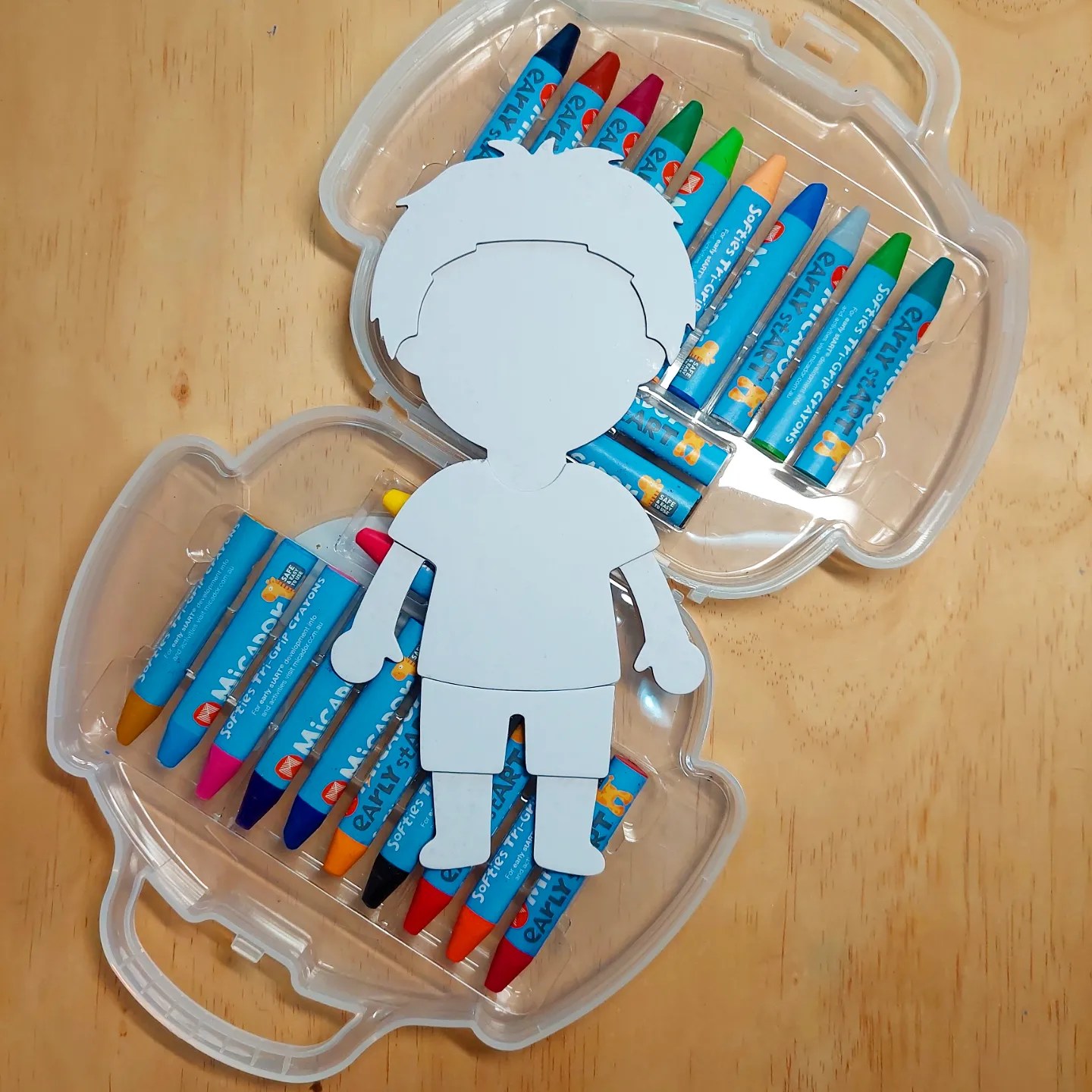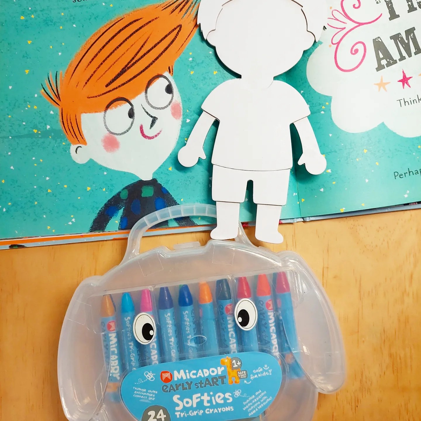 We found these girl & boy silouette cardboard cut outs from @kmartaus & the cute caterpillars/wormy design……. from @krafterskorneraus …… and kids crayons from @micador❤