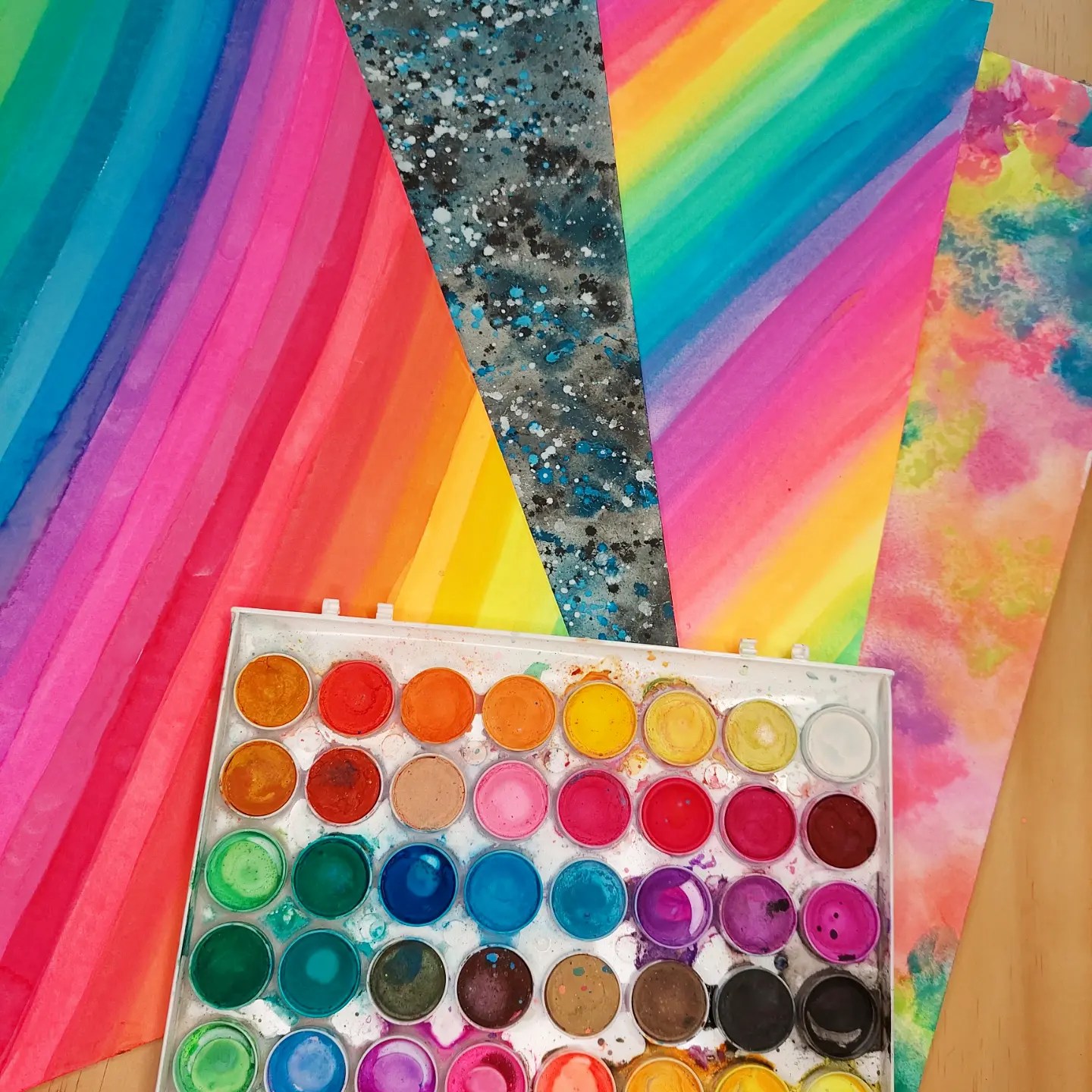 All these gorgeous papers painted with @micador watercolours, these have lasted and produced the most beautiful colours and rainbow blends!!