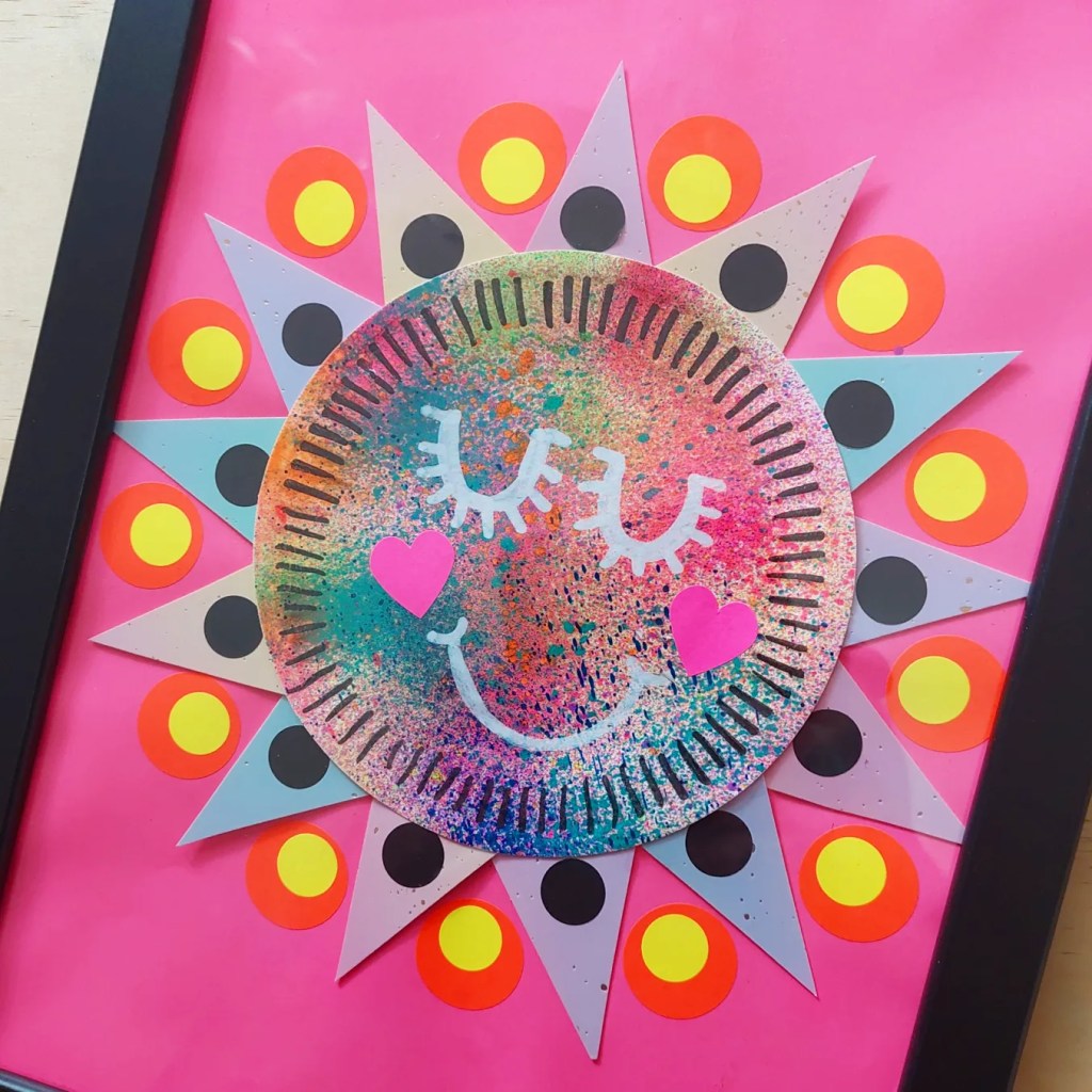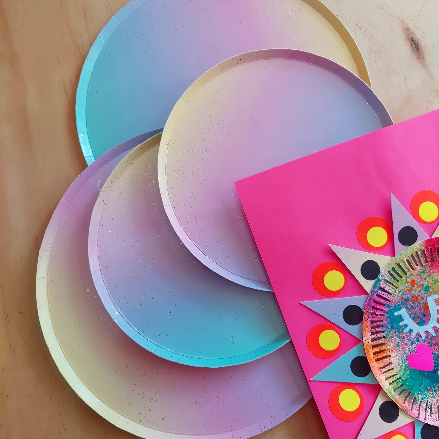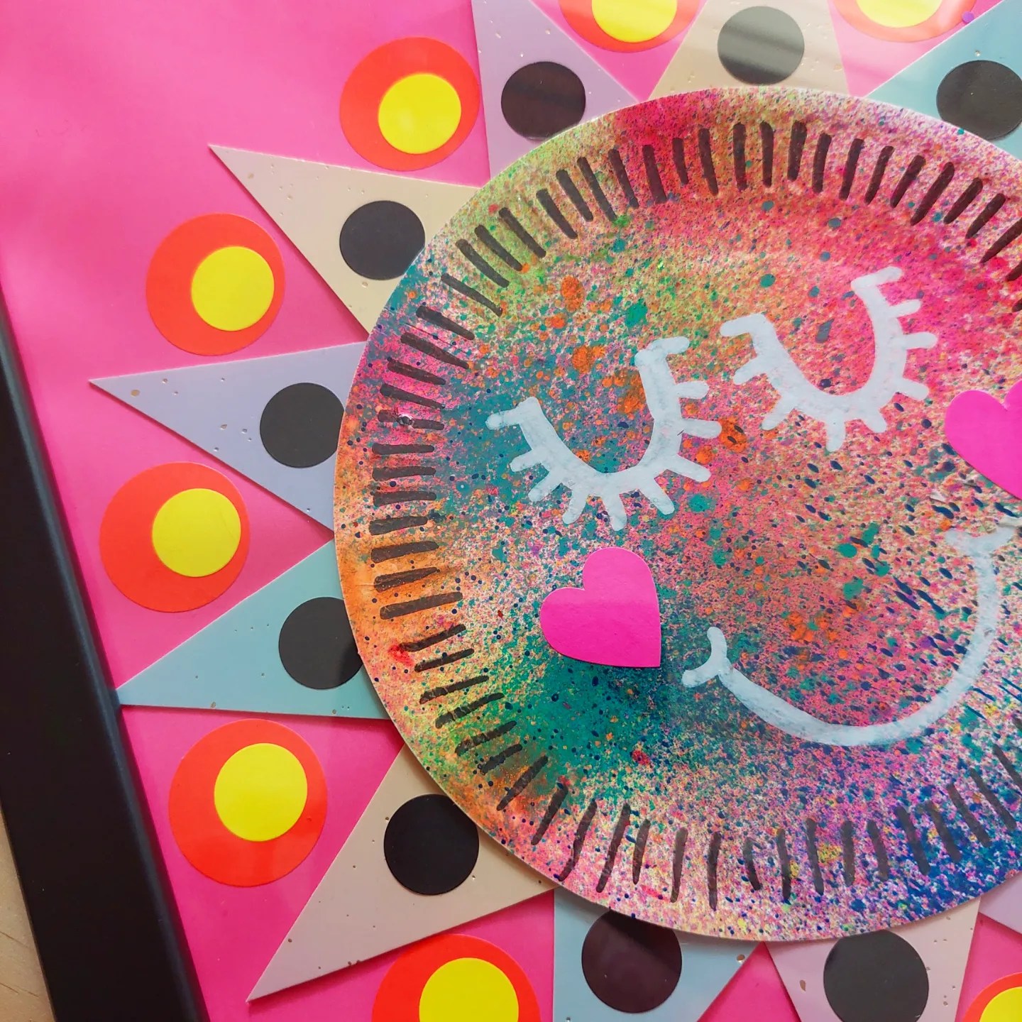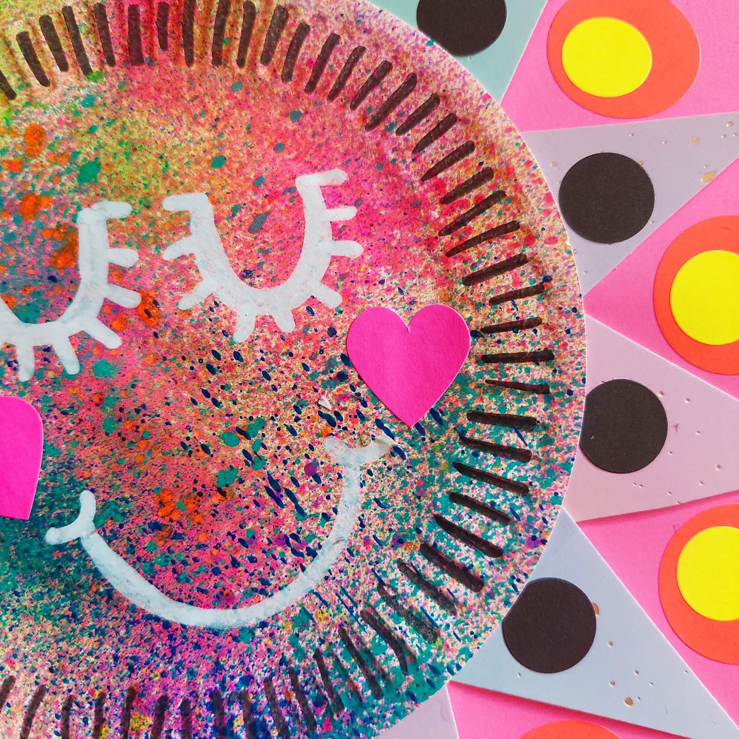 A simple cute paper plate crafty activity. Fun mixed coloured dot stickers from Newsagents & @officeworks make the simple project so fun and bring cute playful layers.