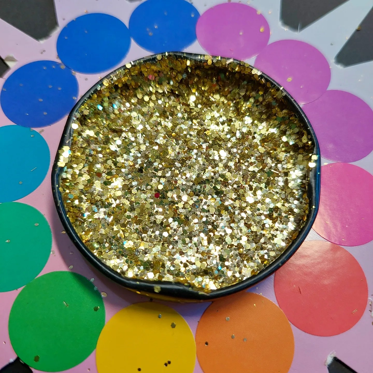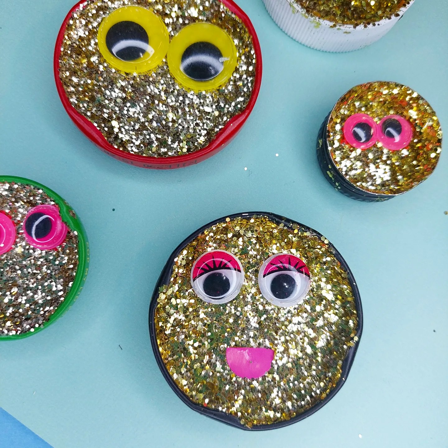 Upcycling some lids by adding some fun gold glitter from @earth_glitter and turning this paper plate into such a sparkly cutie!