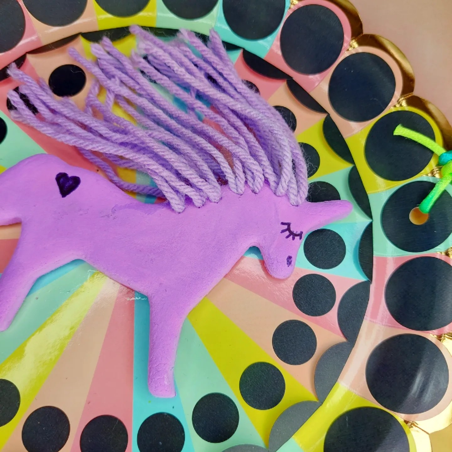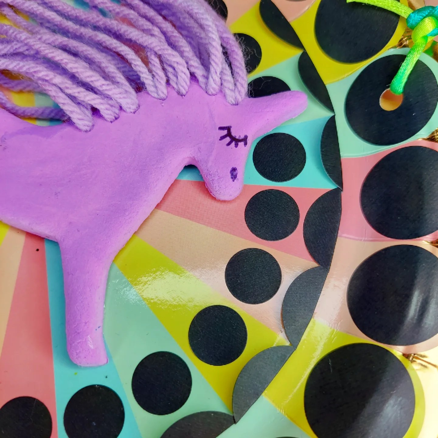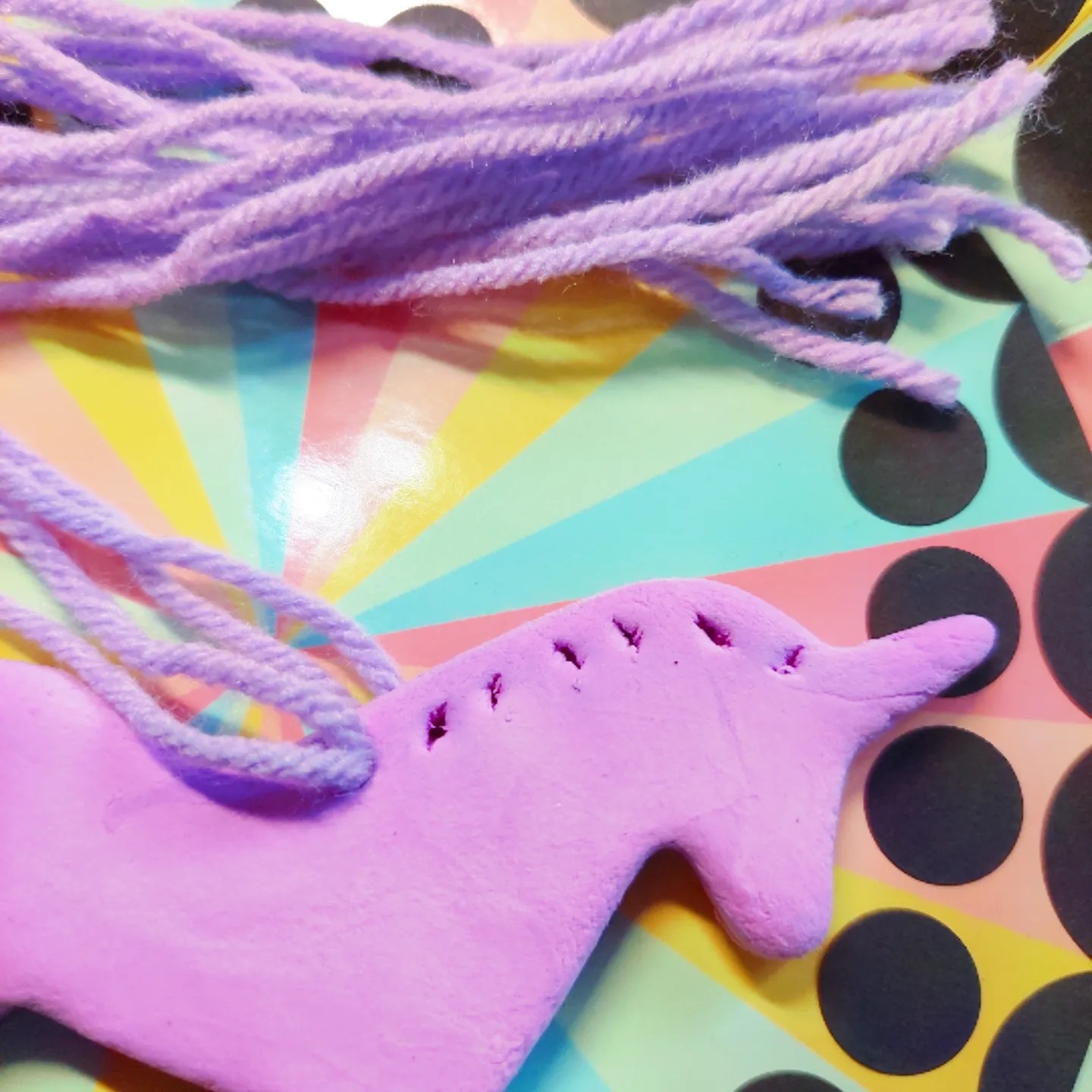 We used a unicorn cookie cutter and let the air dry paper clay dry over 24-48 hours.