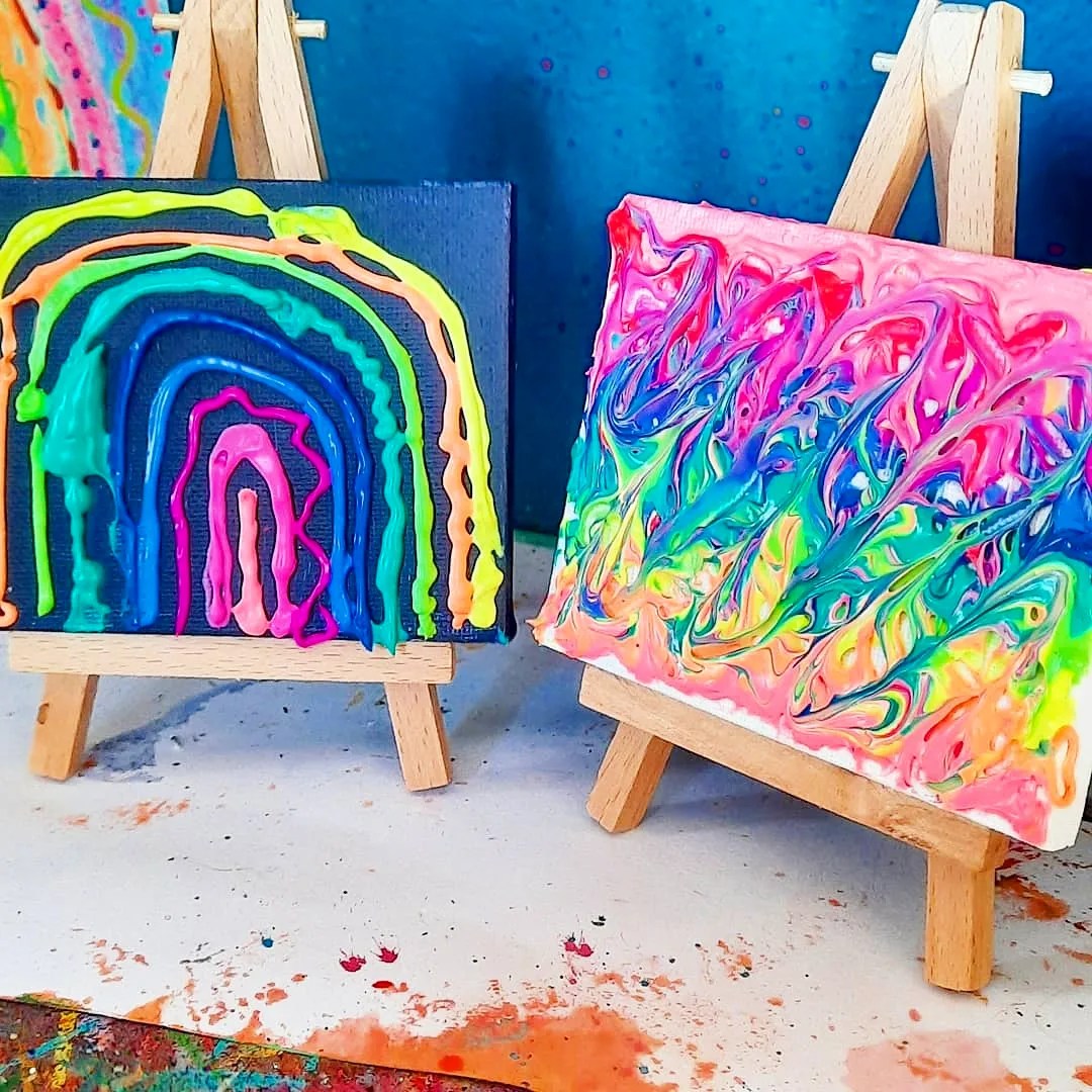 Tiny art, how cute are these mini canvases and easel, mini paintings made using fun puff paint from @kmartaus adding a bit of texture, cute plain canvas from @montmarteart so many ideas!!