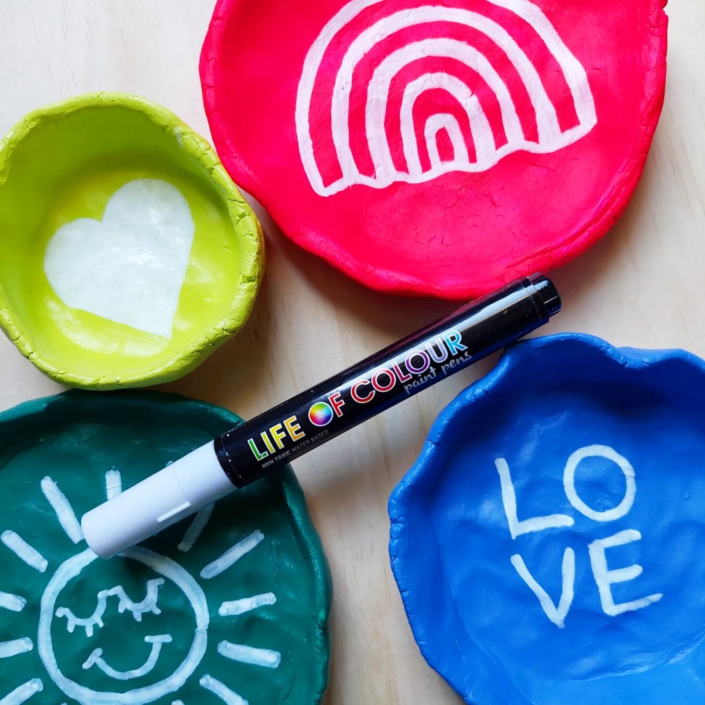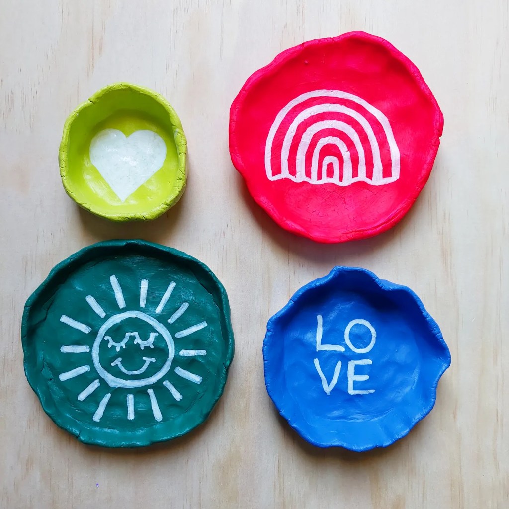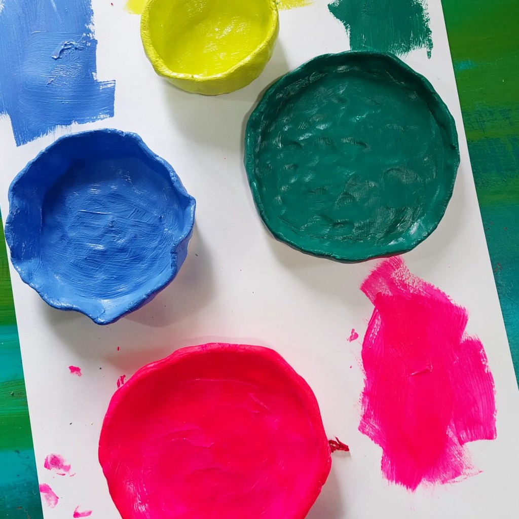 Who doesn’t love decorating air dry clay, white palette for endless idea’s!?…… this plain clay from from @officeworks and added a pop of colour from @globalcolours and the outside painted with that devine vibrant paint.