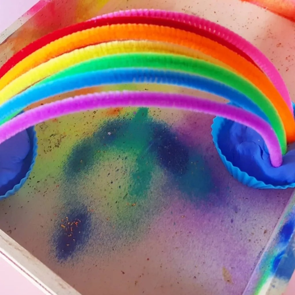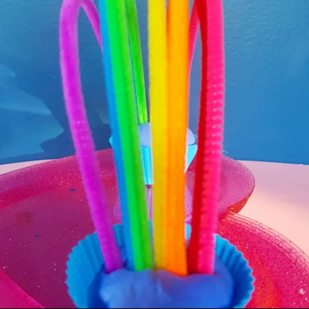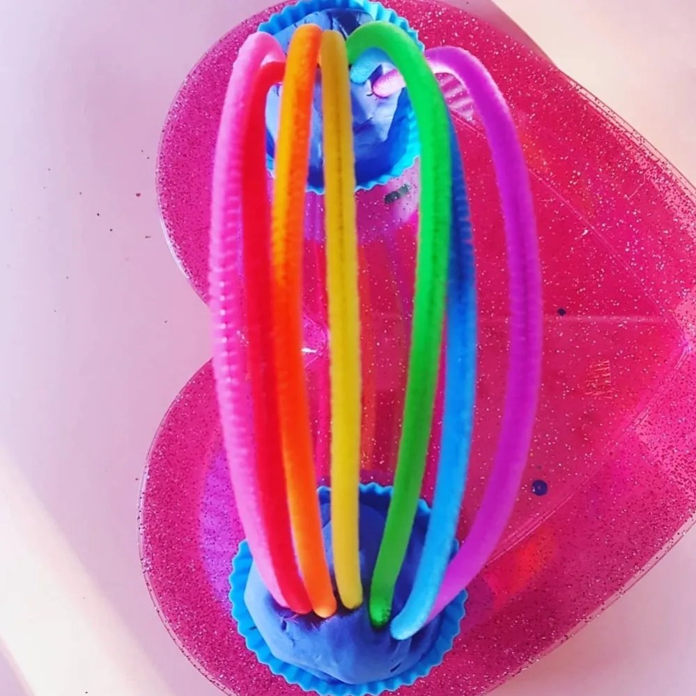 Rainbow arches using pipe cleaners.This is a cute activity for mixed ages, you can even add straw pieces and rainbow coloured pipe cleaners for another version of a gorgeous rainbow!!!!