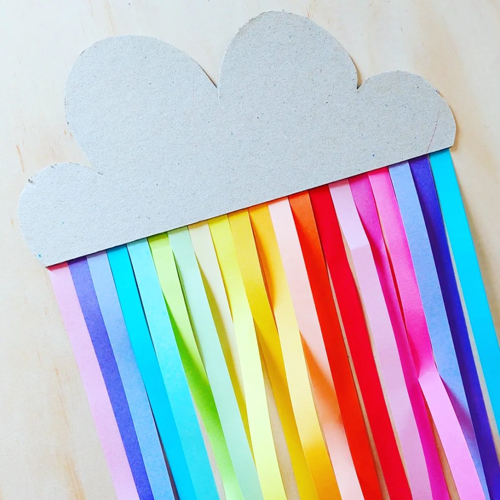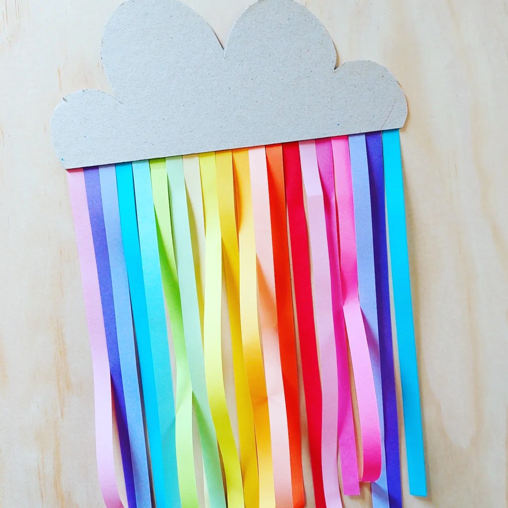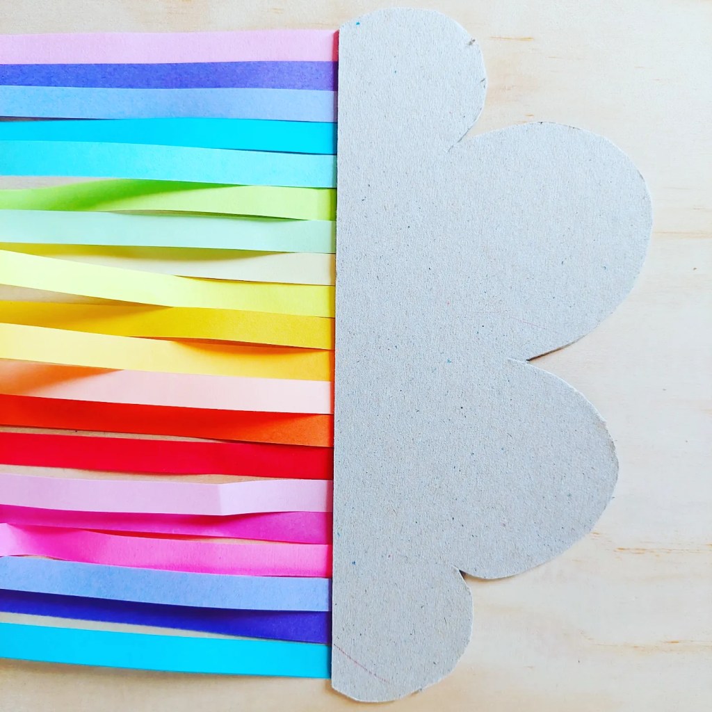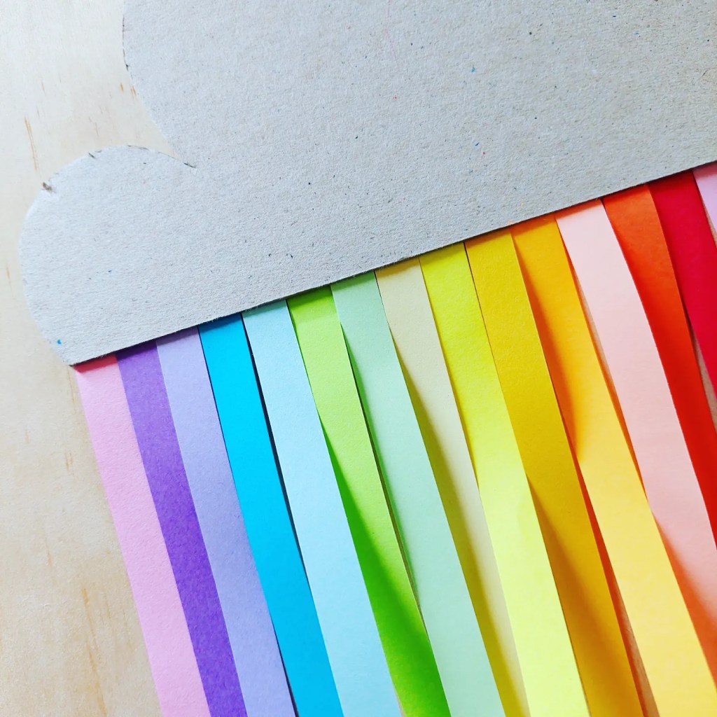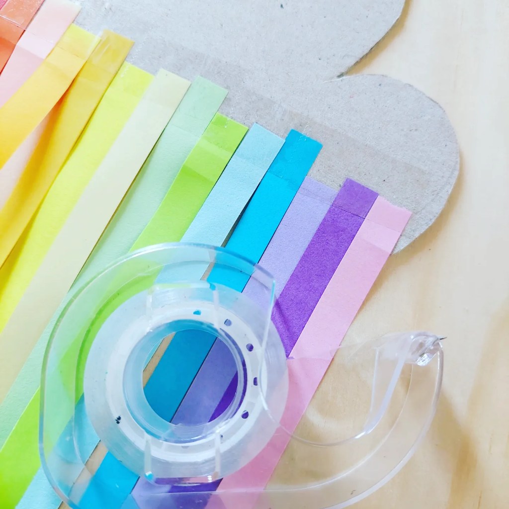 Beautiful paper rainbows! Upcycled cardboard for clouds and tadddaaaa! Rainbow magic.