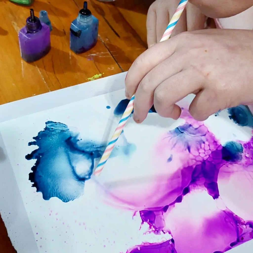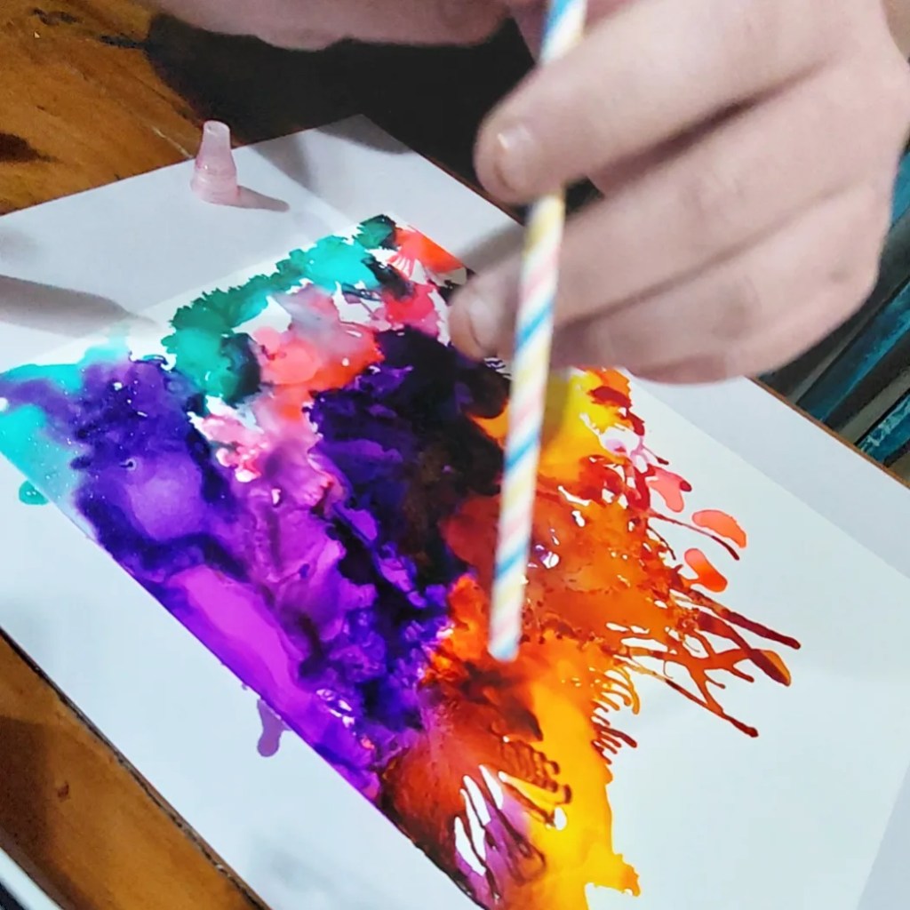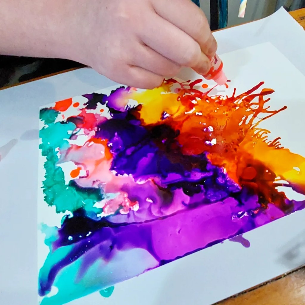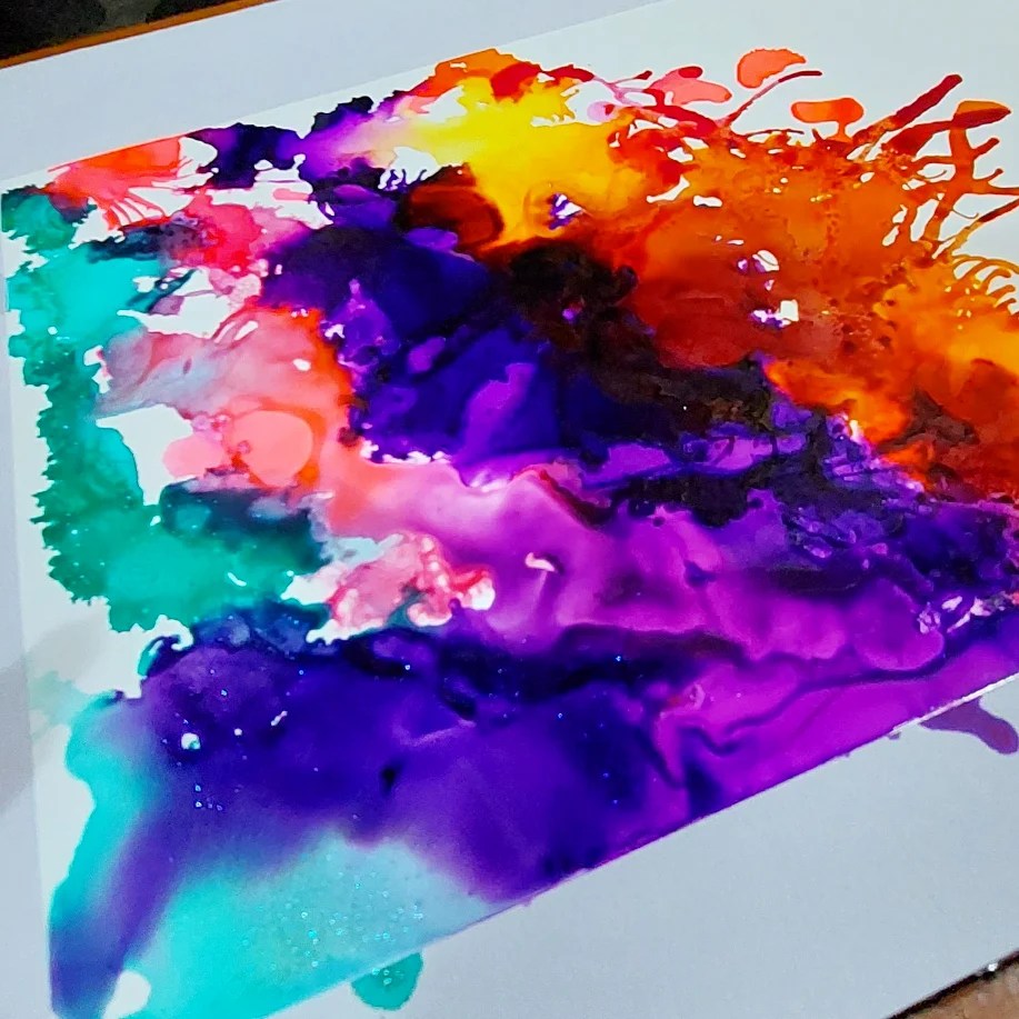 Alcohol inks, my oldest Scarlette making some really gorgeous colour blends with Alcohol inks on yupo paper from @riotartandcraft