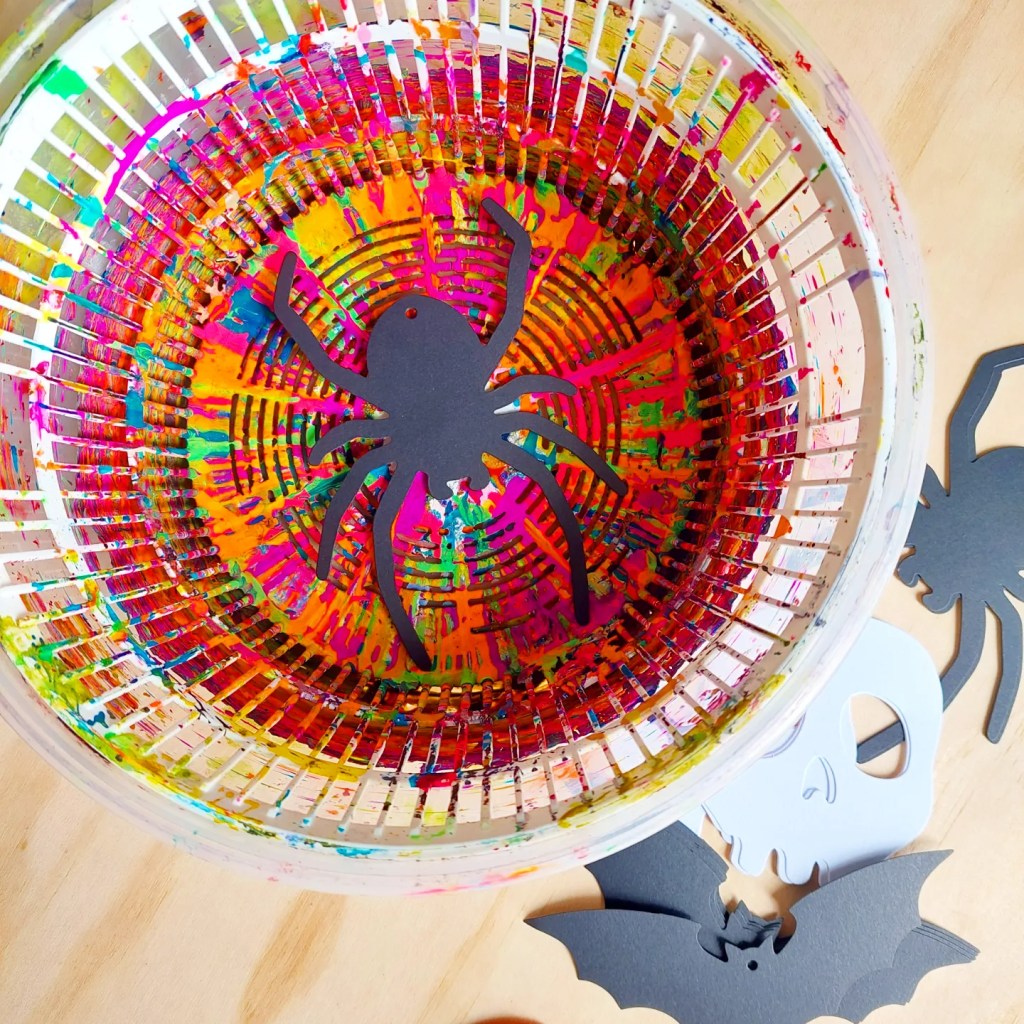 How amazing are these Halloween cut outs using the @ikea_australia salad/lettuce spinner with their paints.