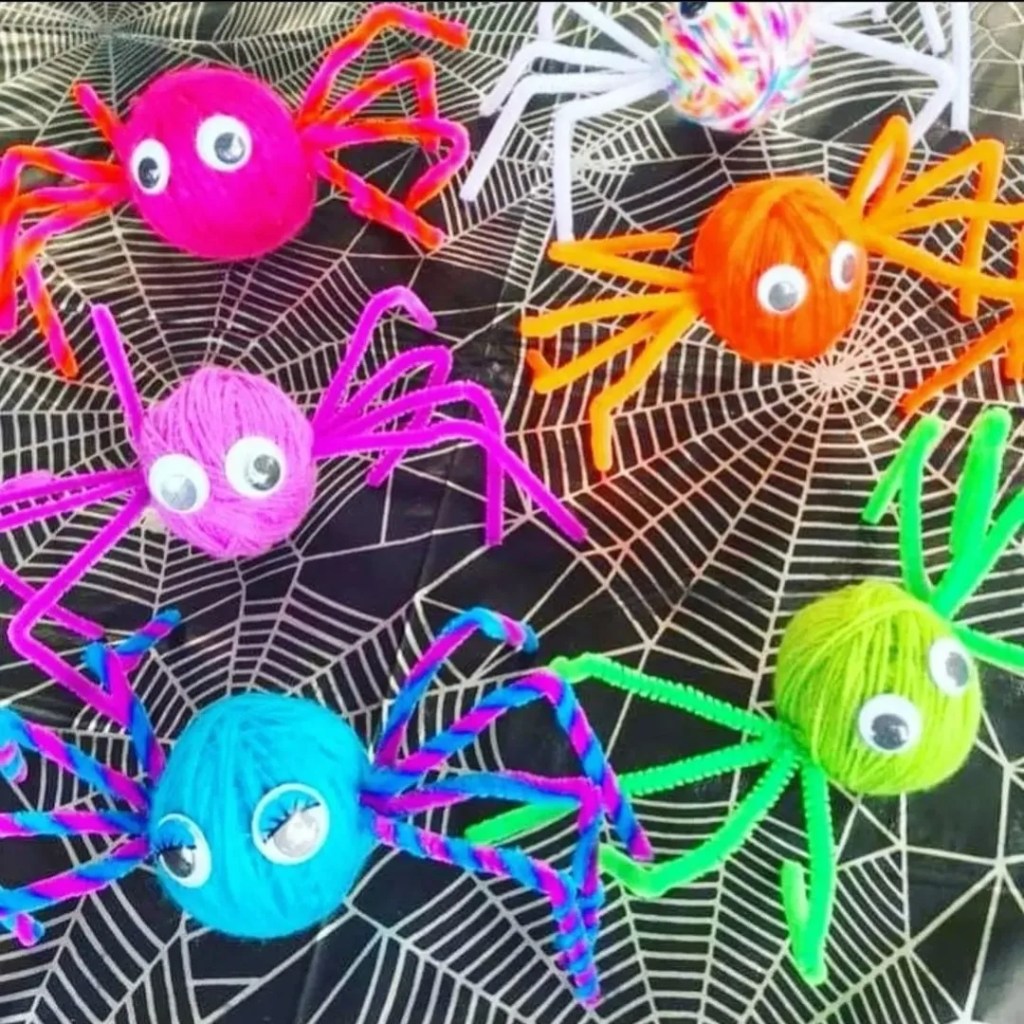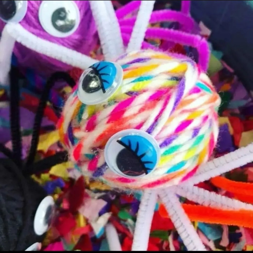 Cont from last post……. The cutest friendliest spiders ever…. this was super addictive making these balls of wool… …. this inspo for one of our absolute favs @hellowonderful_co thank you for always making so many amazing crafts!!!!