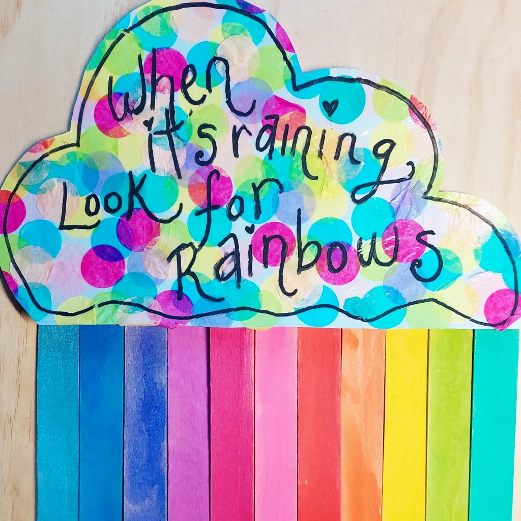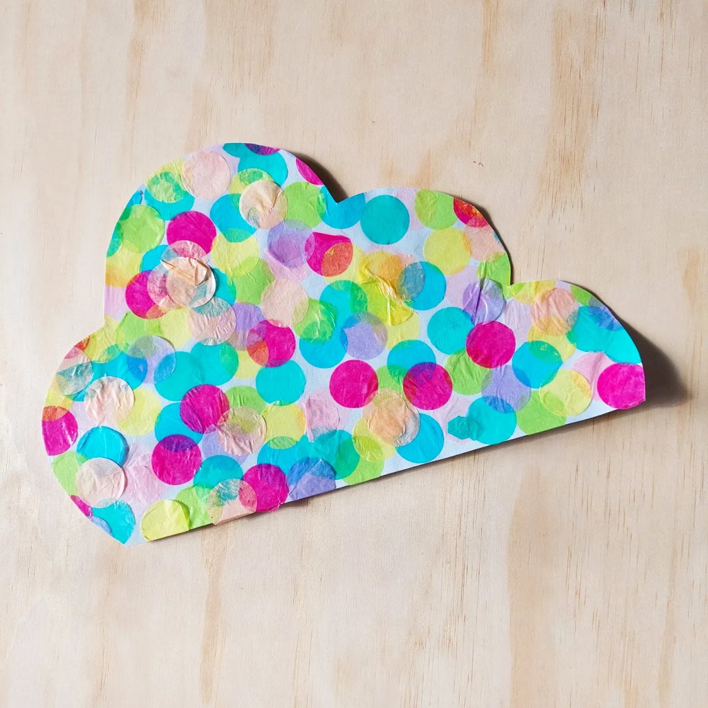 We used some cardboard for the cloud adding party confetti dots from a party dollar store ( @ronisretailstore )