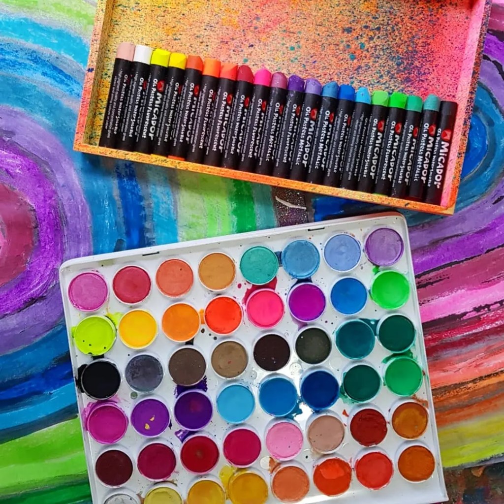 We made our gorgeous paper with @micador oil pastels & jumbo watercolour palette available at @bigwaustralia or on their website (www.micador.com.au). Little ones can make the most amazing art using this technique.