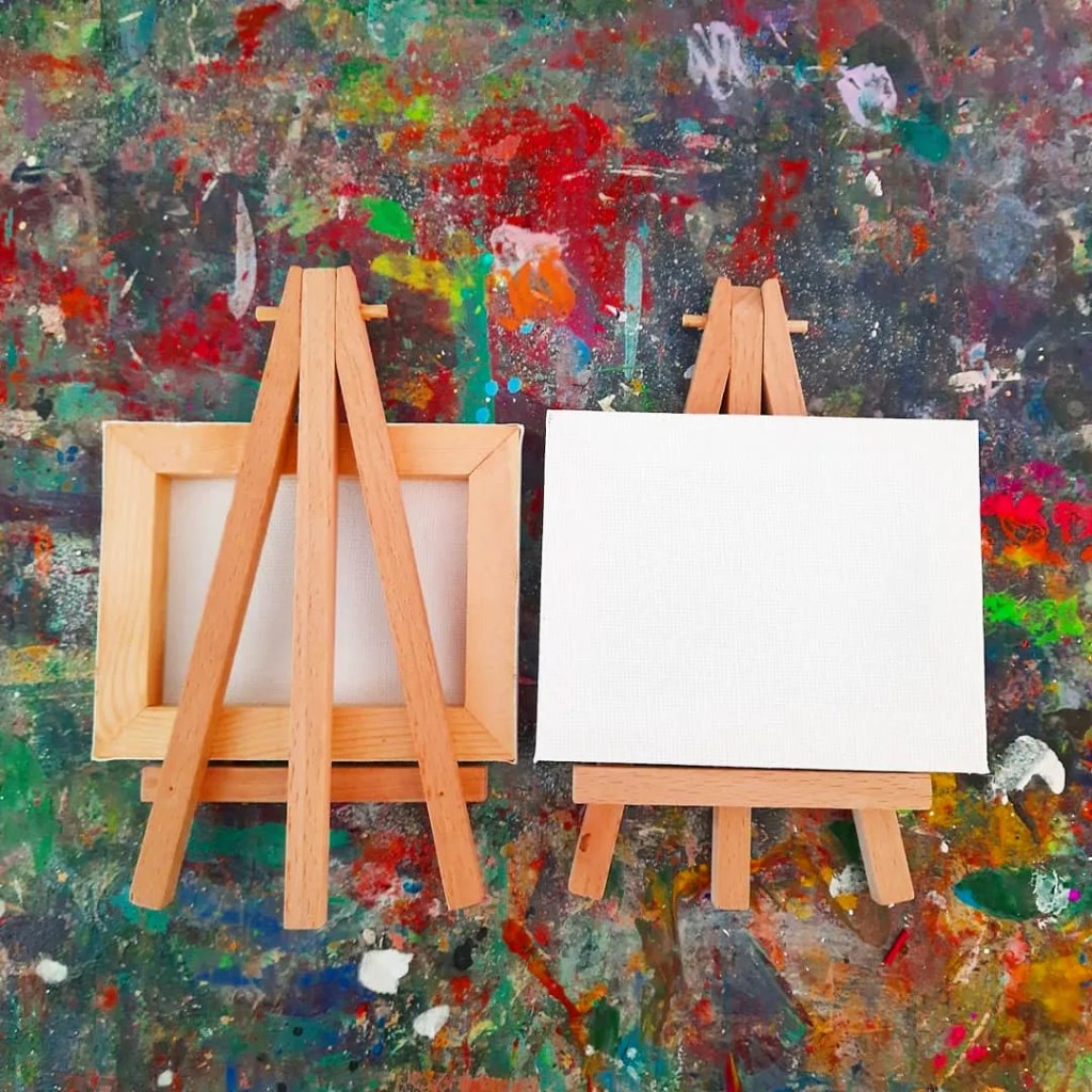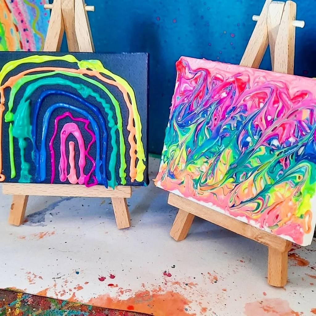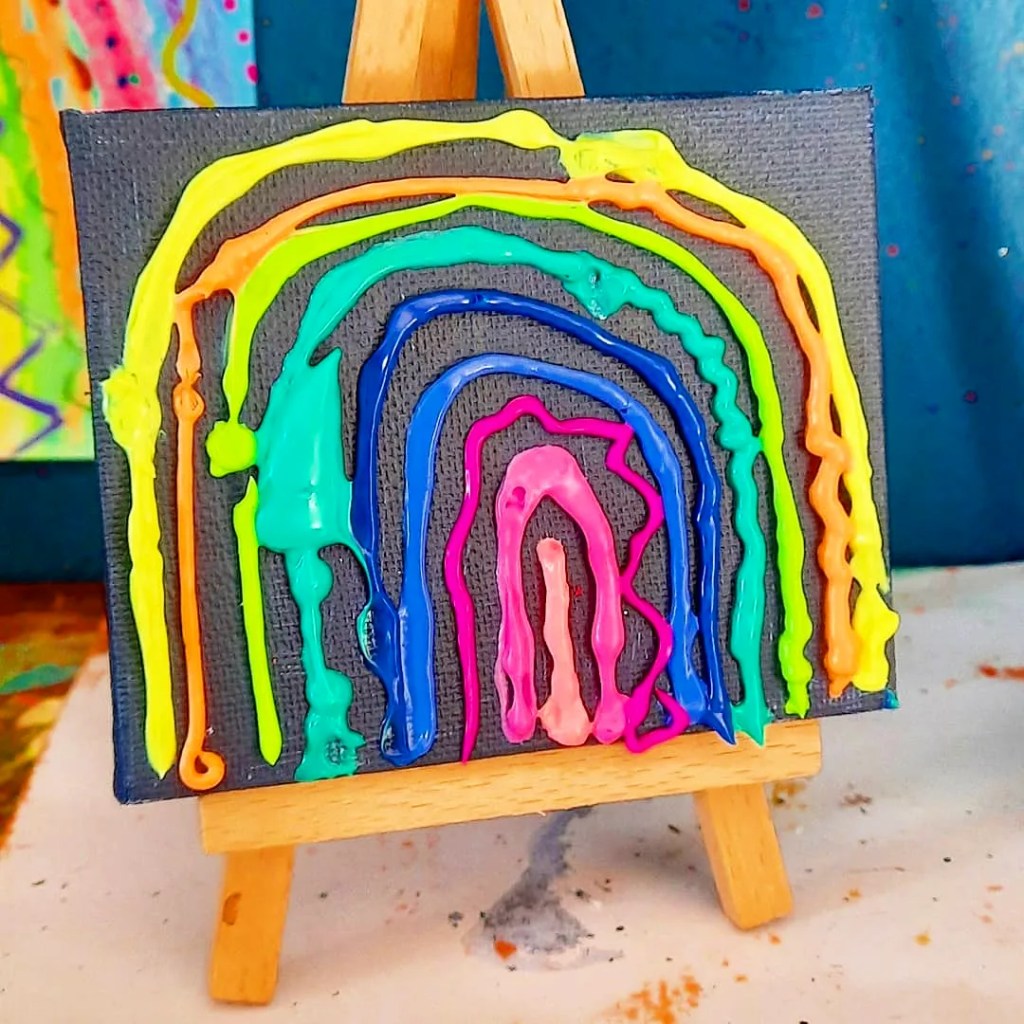 Tiny art, how cute are these mini canvases and easel, mini paintings made using fun puff paint from @kmartaus adding a bit of texture, cute plain canvas from @montmarteart so many ideas!!