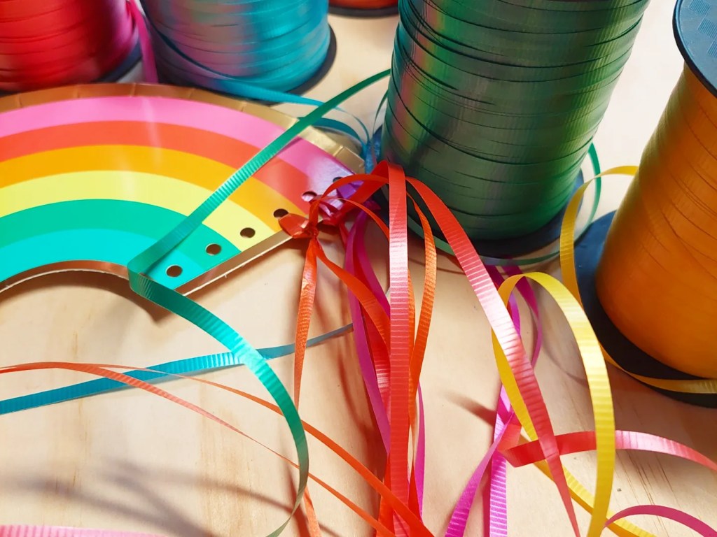 A simple easy stunning activity, hole punch, curling ribbon and 1 paper plate!