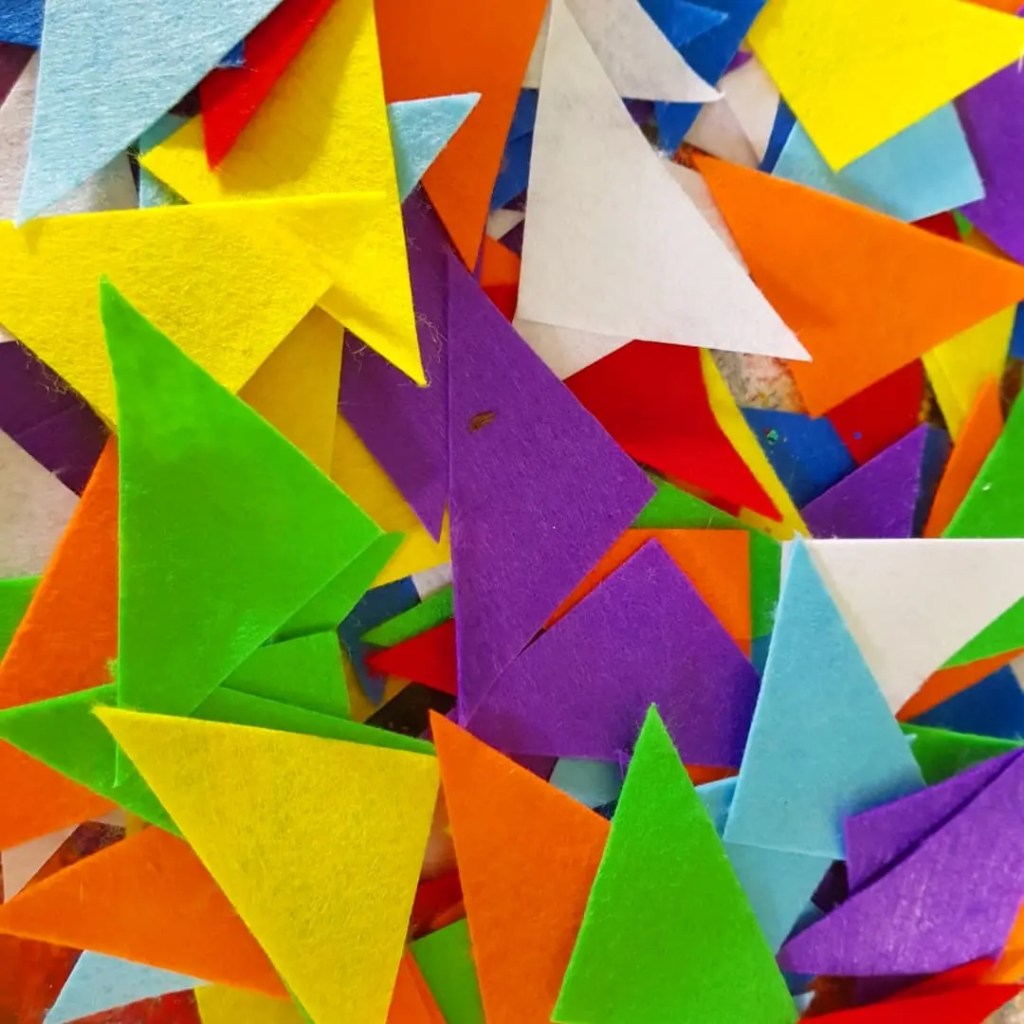 We used felt triangles but they work with coloured paper aswell.