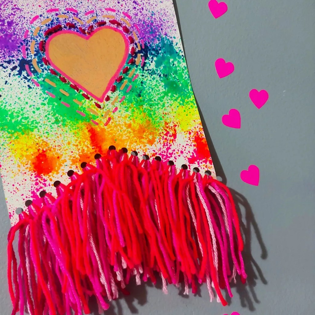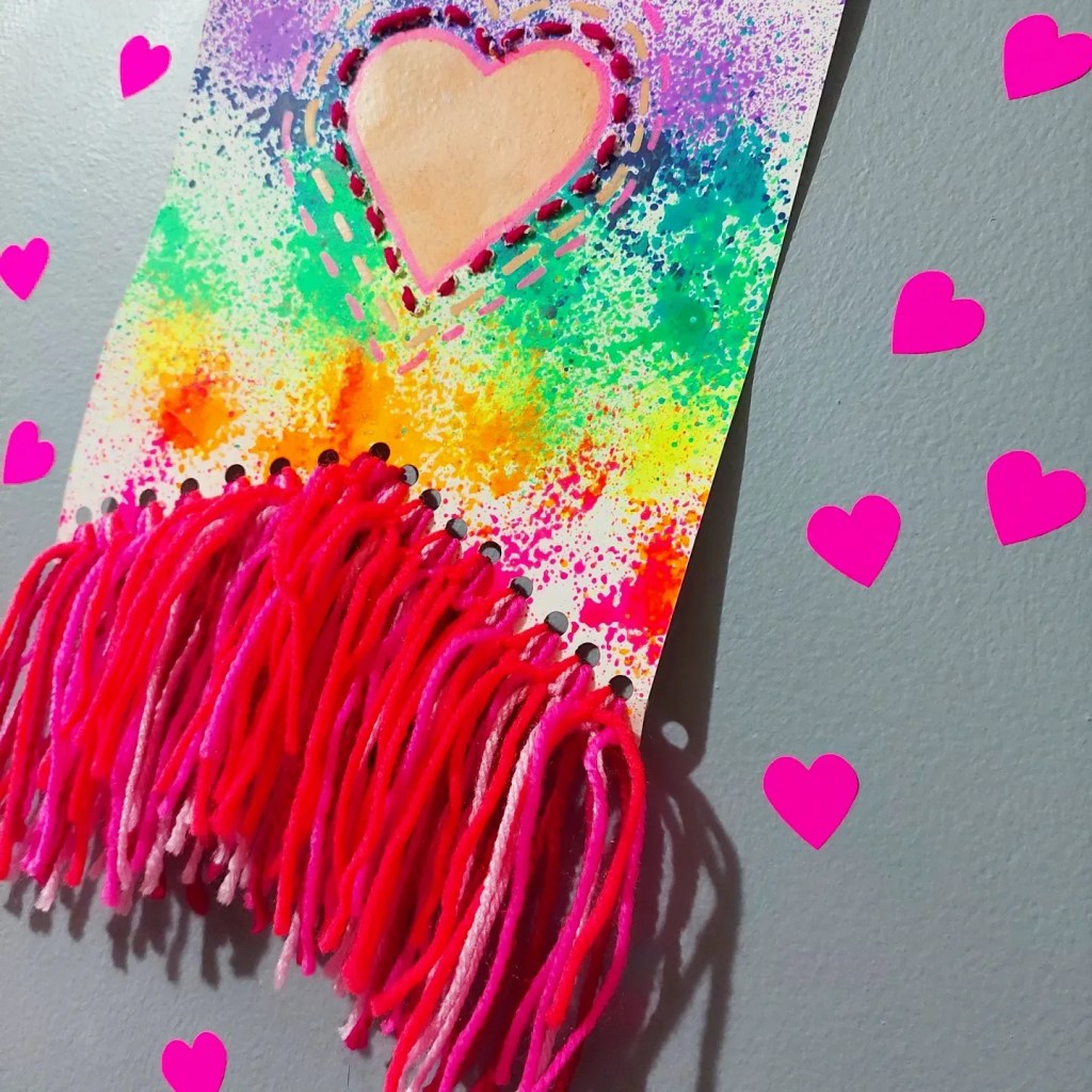 #cardboard #cardboardcrafts #cardboardproject #fluorescent #wool #paint #paintsticks #homeschool #kidsart #childrensart #kidscraft #crafty #craftykids #heartcraft #heart #recycledcraft #rainbow #create #creativekids #valentines #rainbowcraft #rainbowart #rainbow #artstudio #artspace #heartcraft #hearts #diy #valentinesday