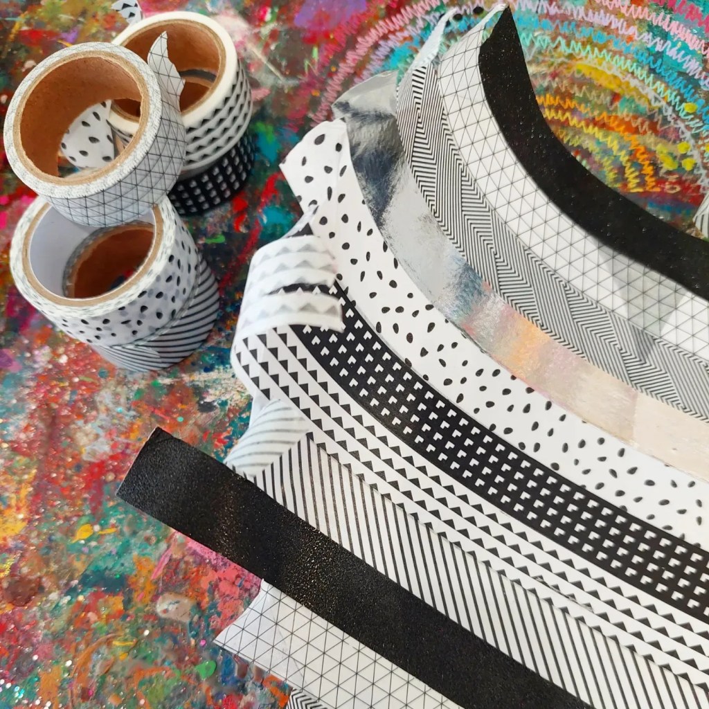 How addictive is washi tape, sooooo many pattern’s & colours to collect, and so this was a beautiful way to compliment these black & white pattern’s on a gorgeous vibrant rainbow.
