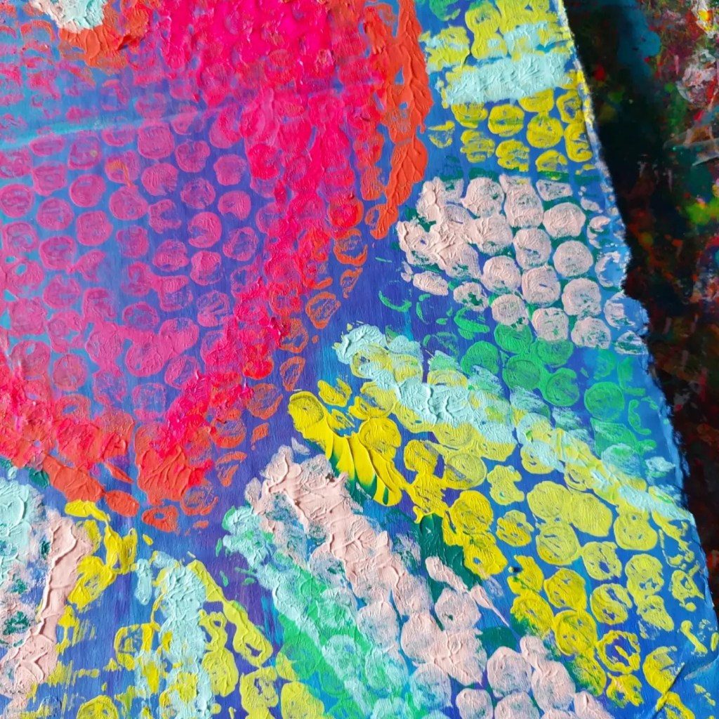 This bubble wrap came in a parcel so upcycling is always fun too, we used @globalcolours acrylic paints & we did 2 layers of colours!