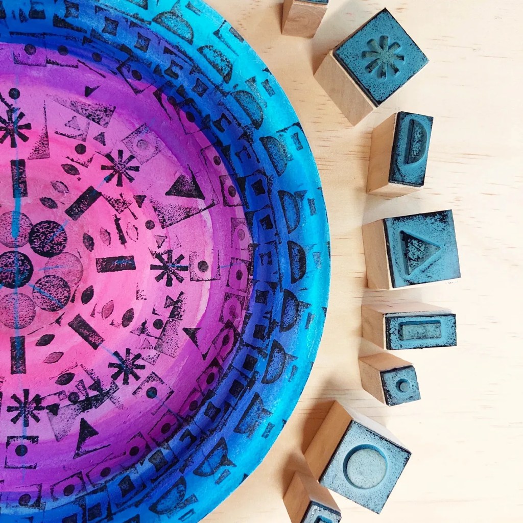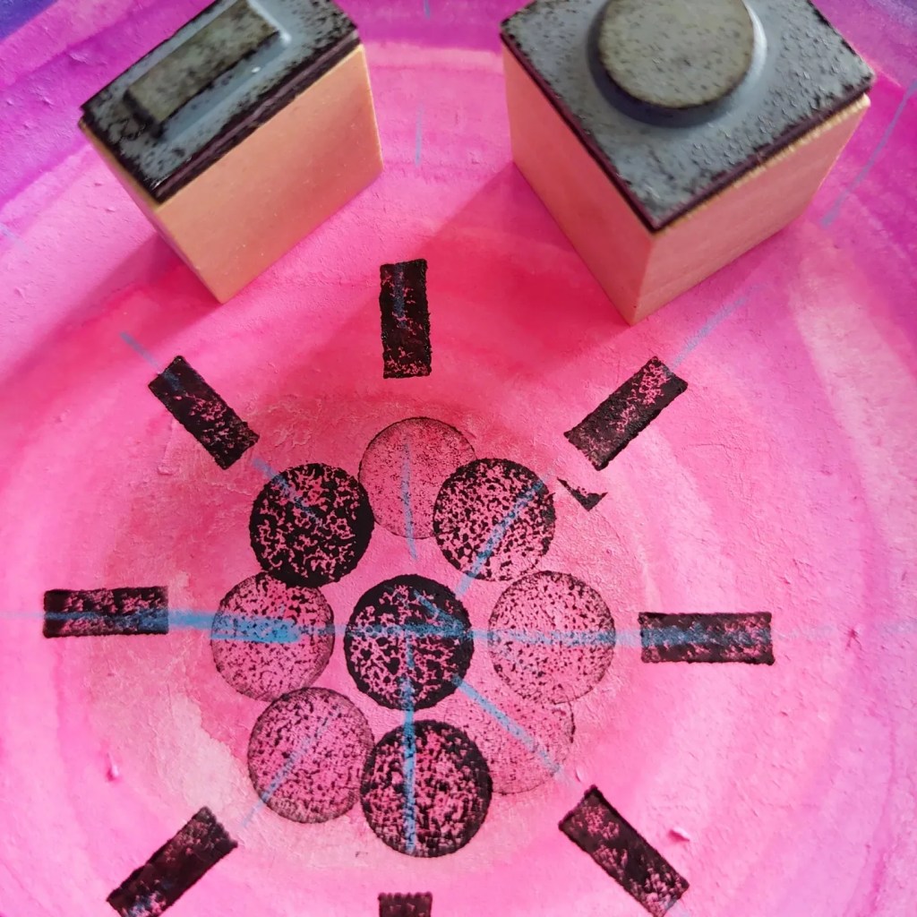 We found these cute little stamps in a kit from @kmartaus & our fabulous watercolours from @micador