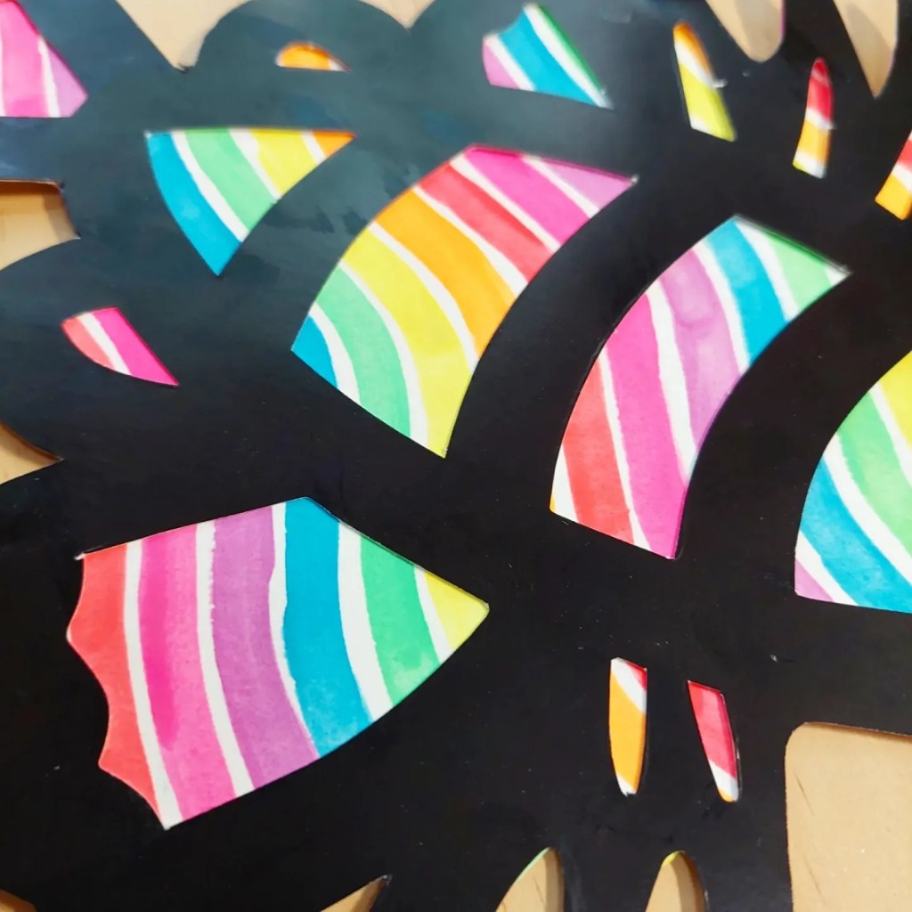 Gorgeous bright rainbow lead light effect sea animals, these fun black cardboard cut outs are from @cleverpatch and the watercolour paper painted paper using the beautiful palette from @micador