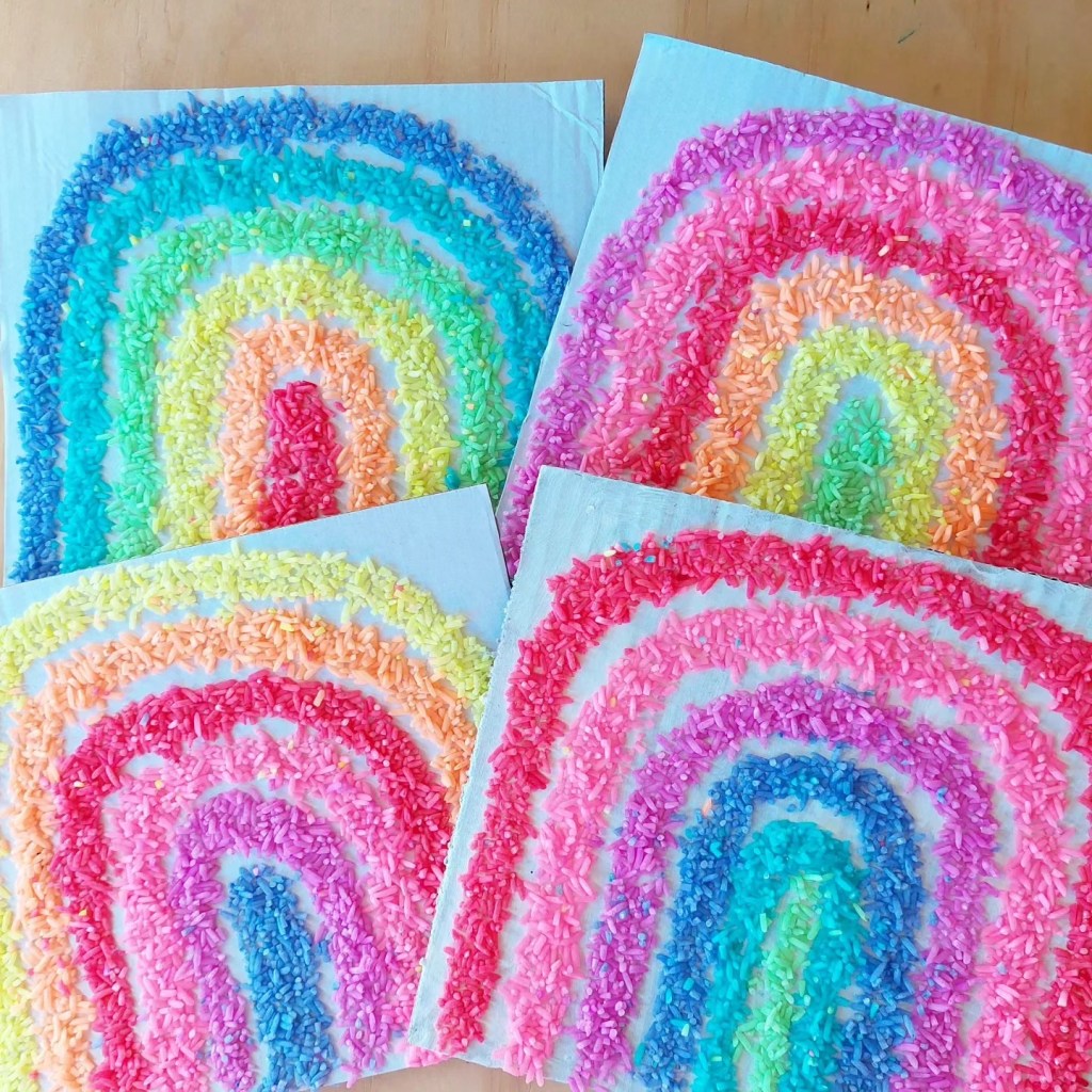 This stuff is so fun…. so many idea’s, here is just one project with upcycling cardboard & glue to make rice art.