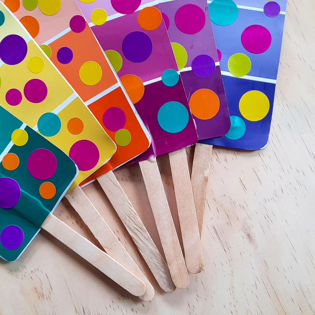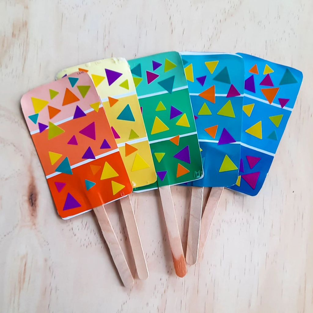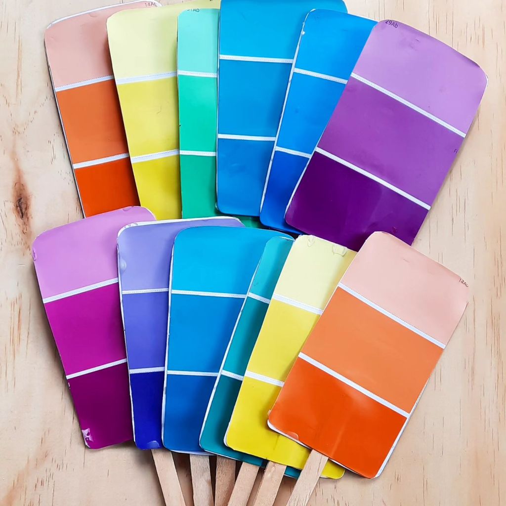 Fun cheerful paintchip popcicles.