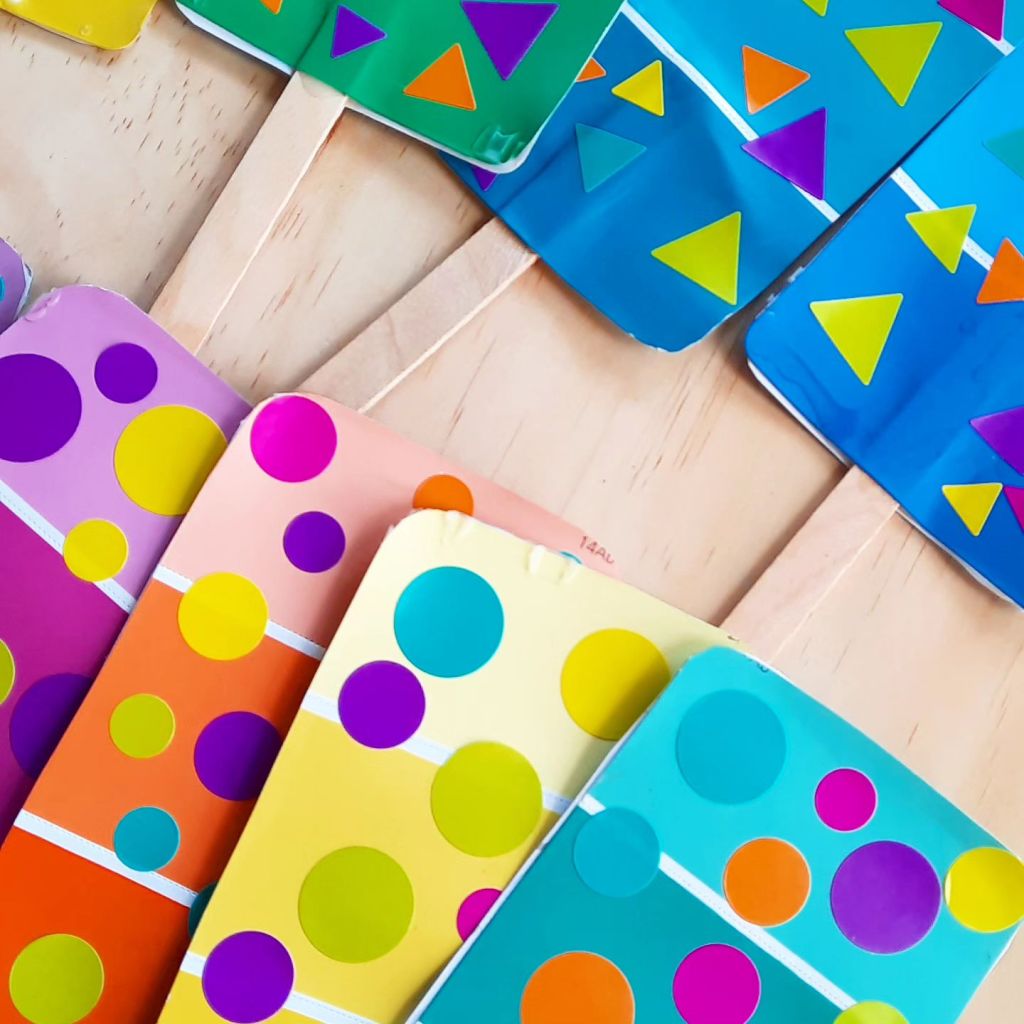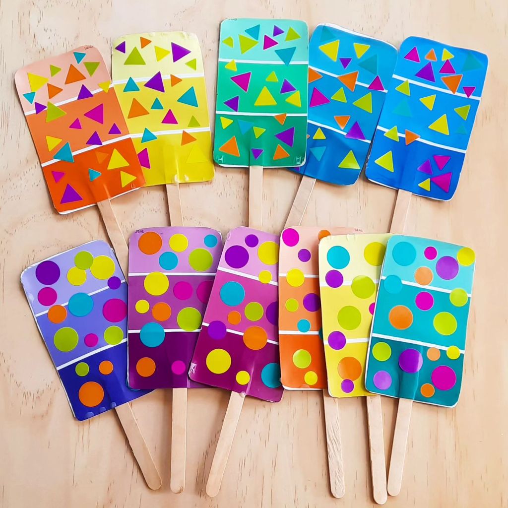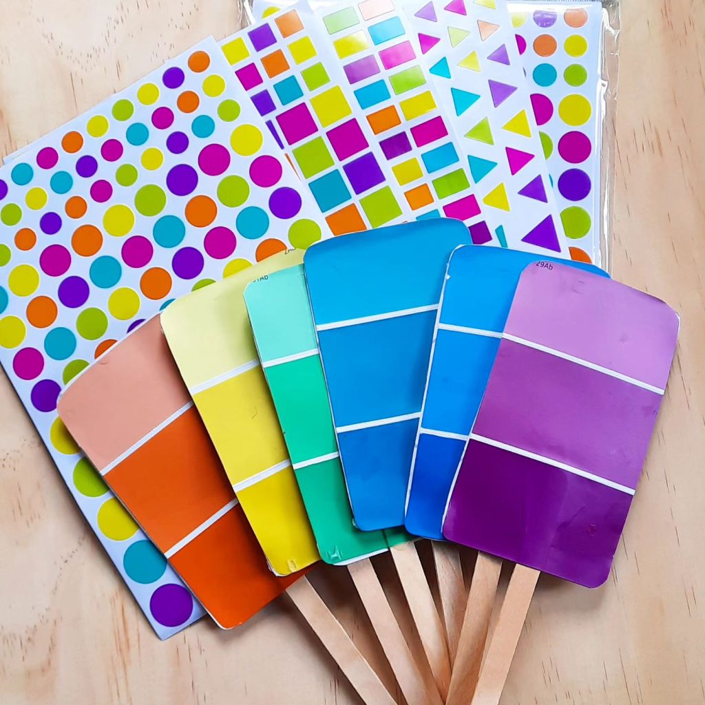 Fun cheerful paintchip popcicles.