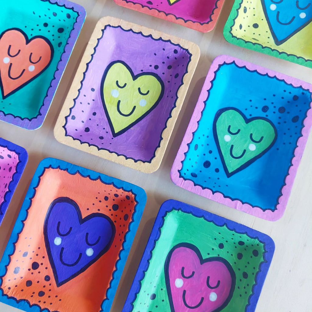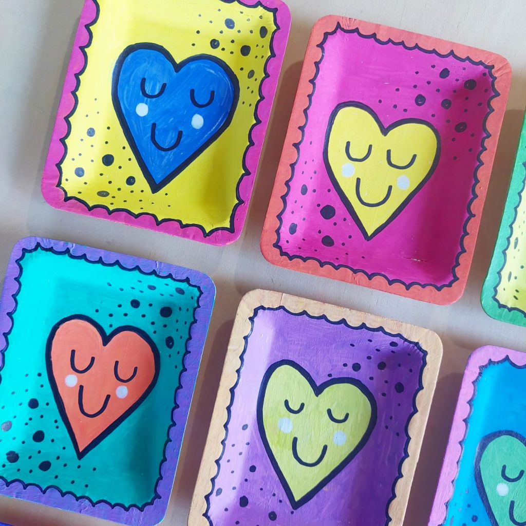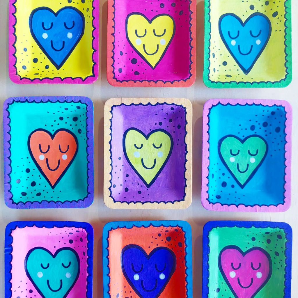 Sealed with gesso or white paint & adding any design you like, mini artworks, smile, faces, mini portraits, affirmation,  stars, rainbows, or even flowers………