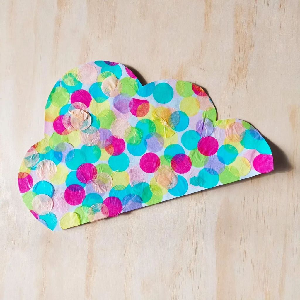 We used some cardboard for the cloud adding party confetti dots from a party dollar store ( @ronisretailstore )
