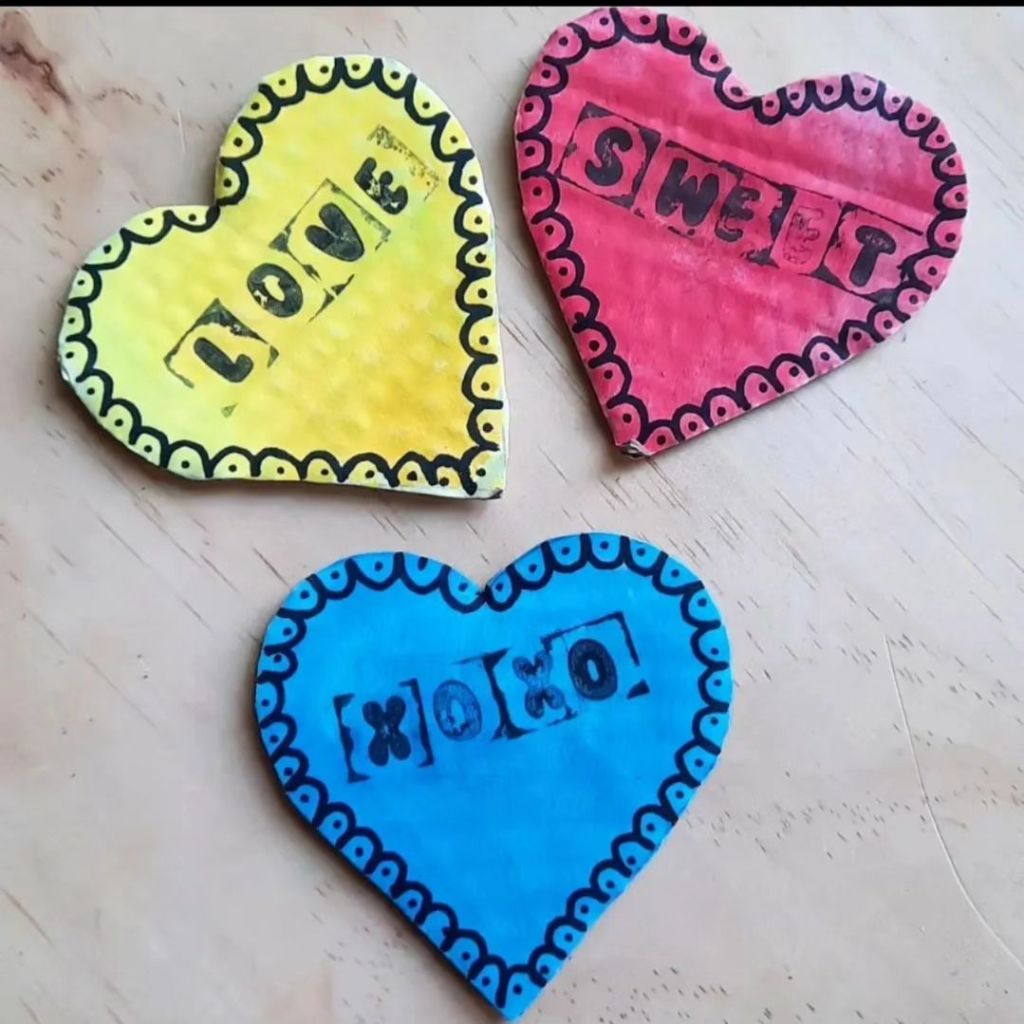 Gorgeous upcycled cardboard hearts!