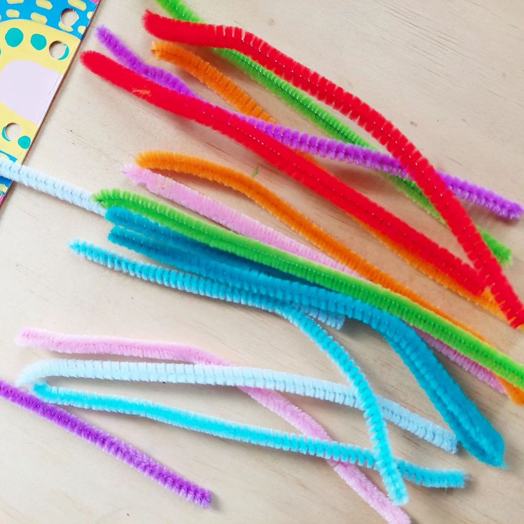 Straws are all cut up different sizes to thread onto pipe cleaners strengthen your fine motor skills.