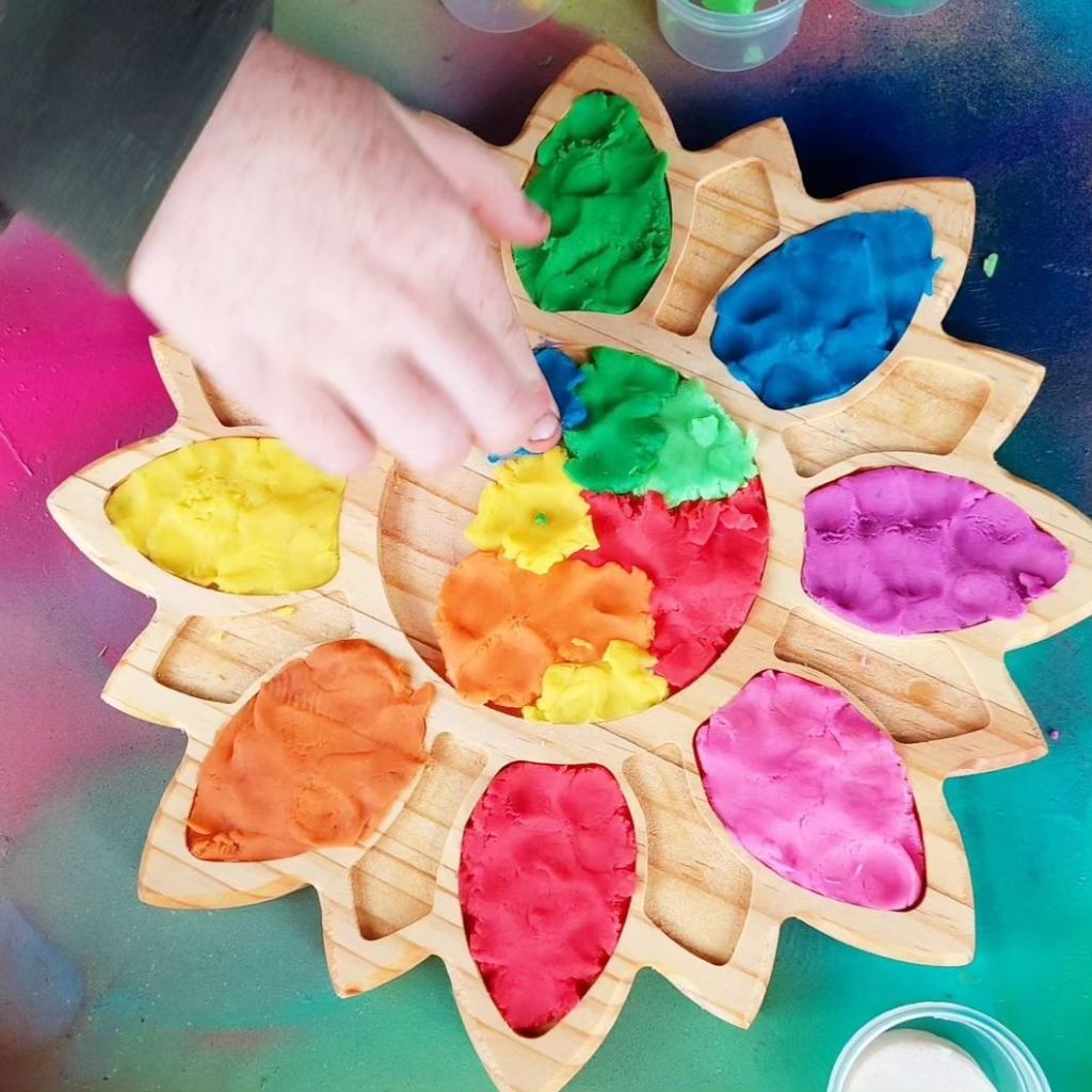 This  bright playdough is amazing, extremely therapeutic for sensory quiet mindfulness time, limitless idea’s.