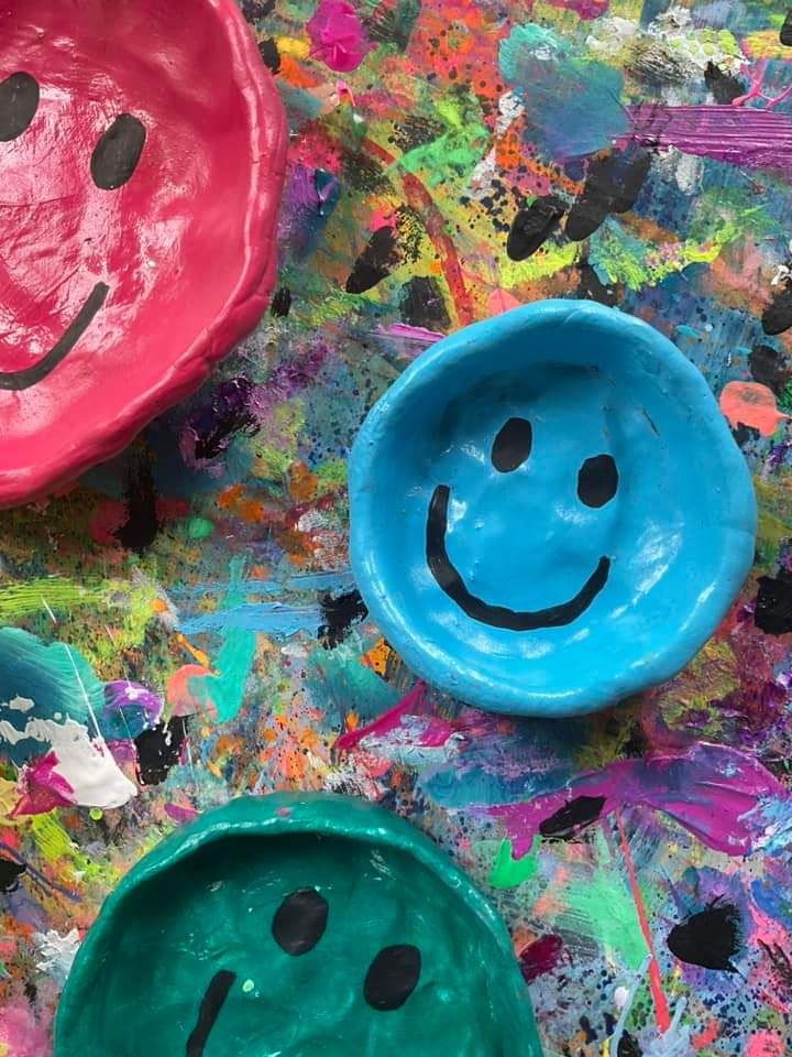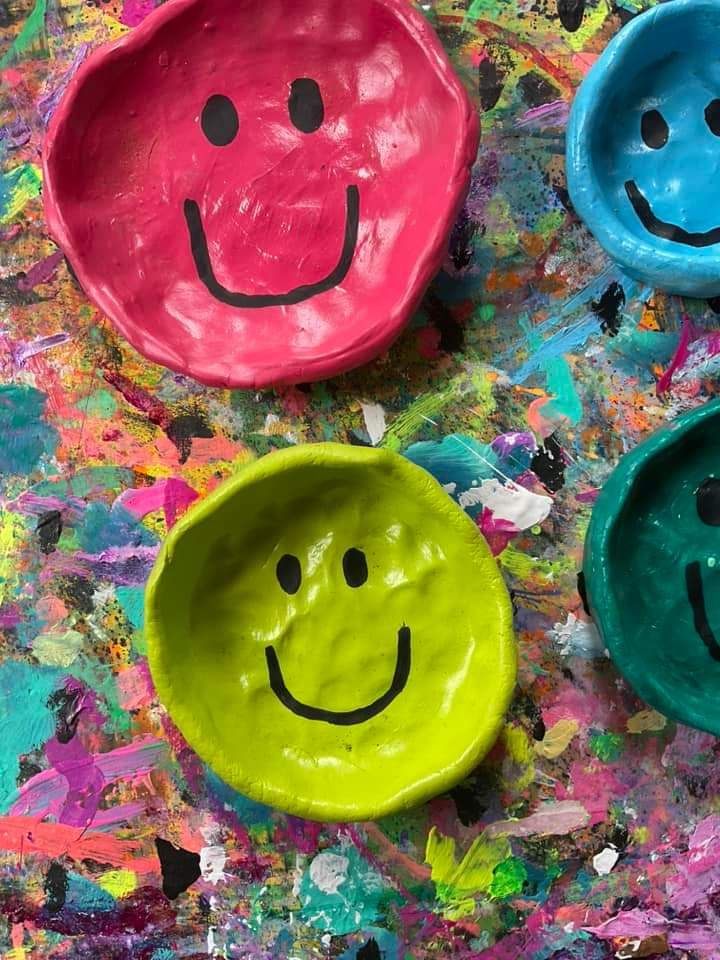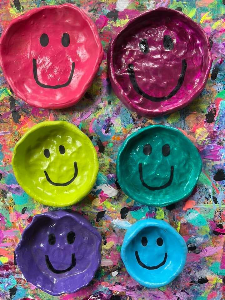 Smiley face air dry clay bowls.