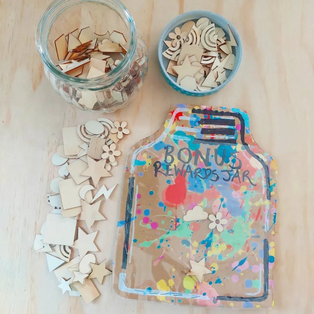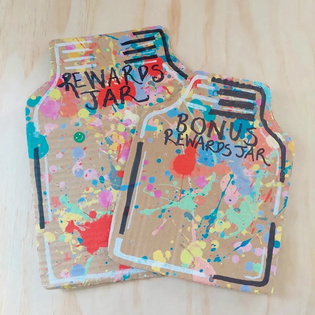 Reward jars for positive job tasks and a little extra jar is for a similar system that their school uses which is “caught you being great” points.